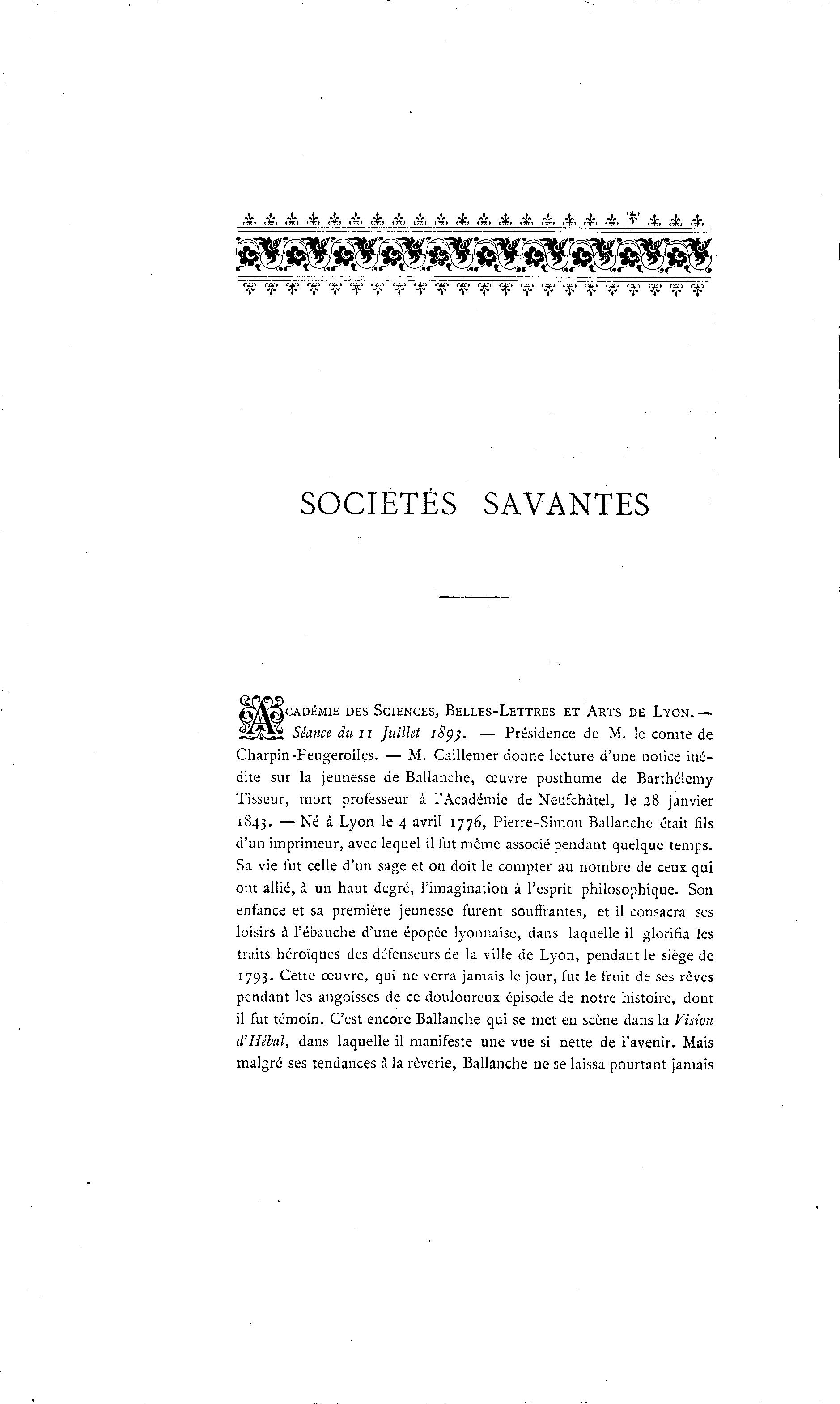 1843. — Né à Lyon le 4 avril 1776, Pierre-Simon Ballanche était fils