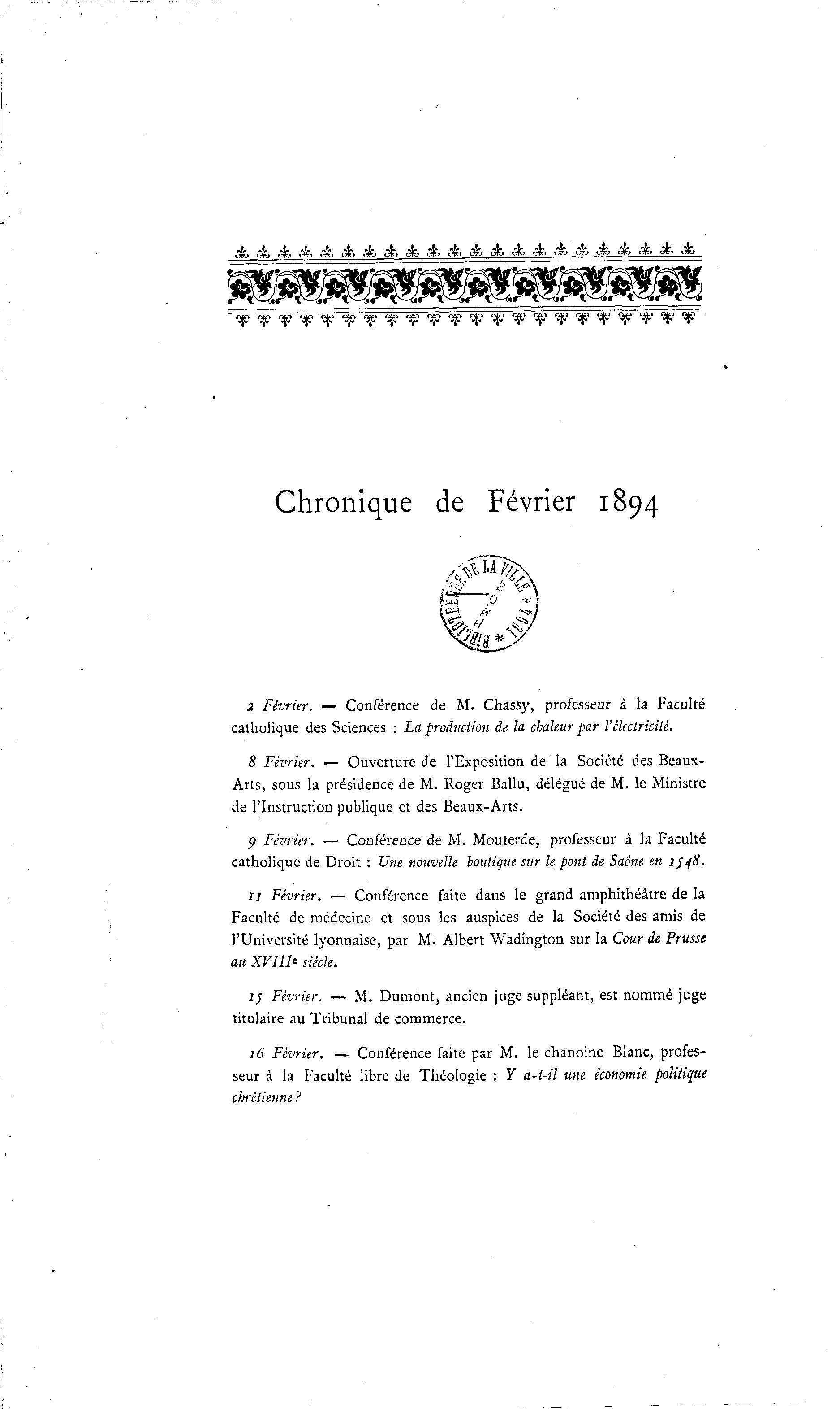 Chronique de Février 1894