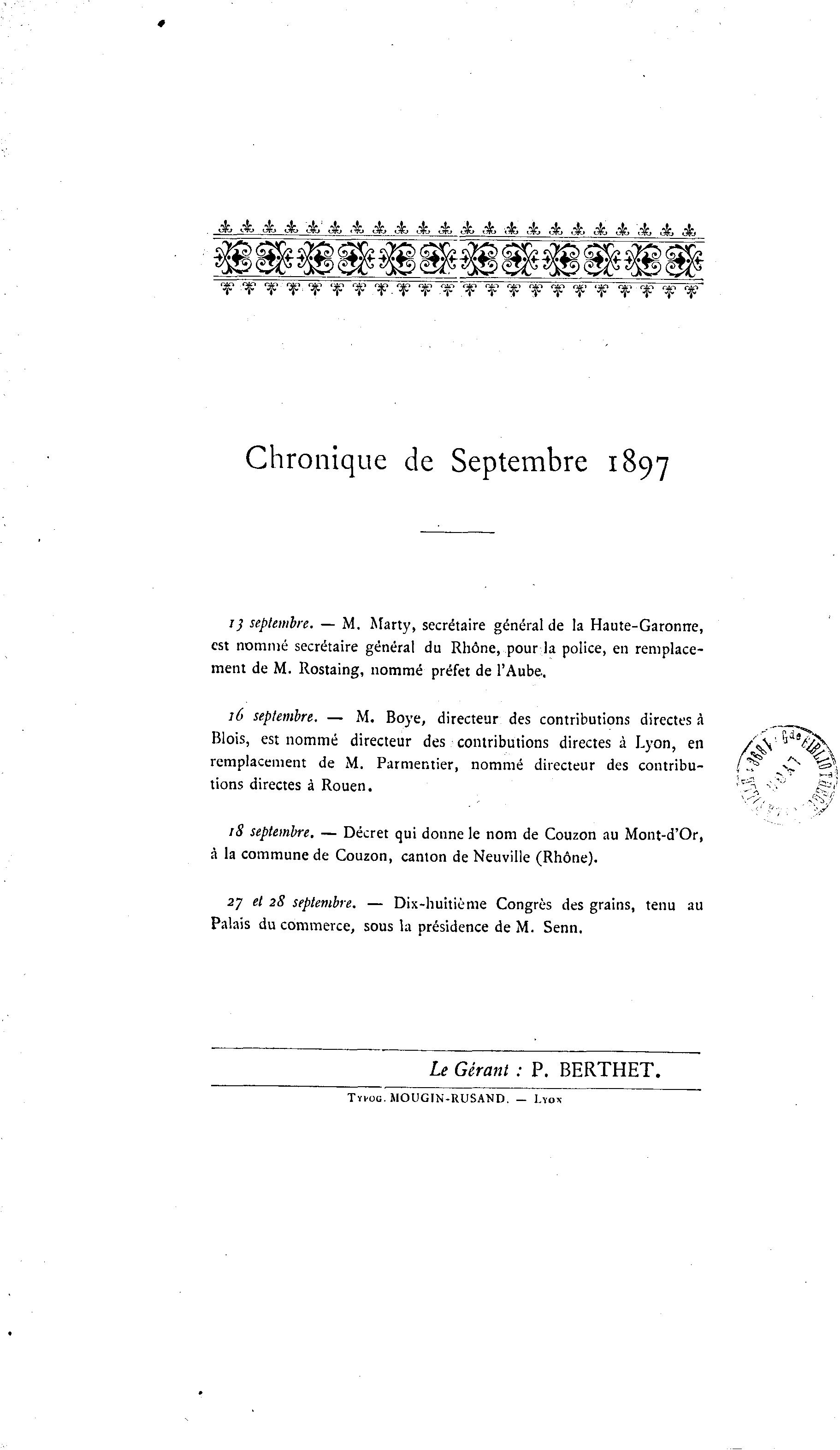 Chronique de Septembre 1897