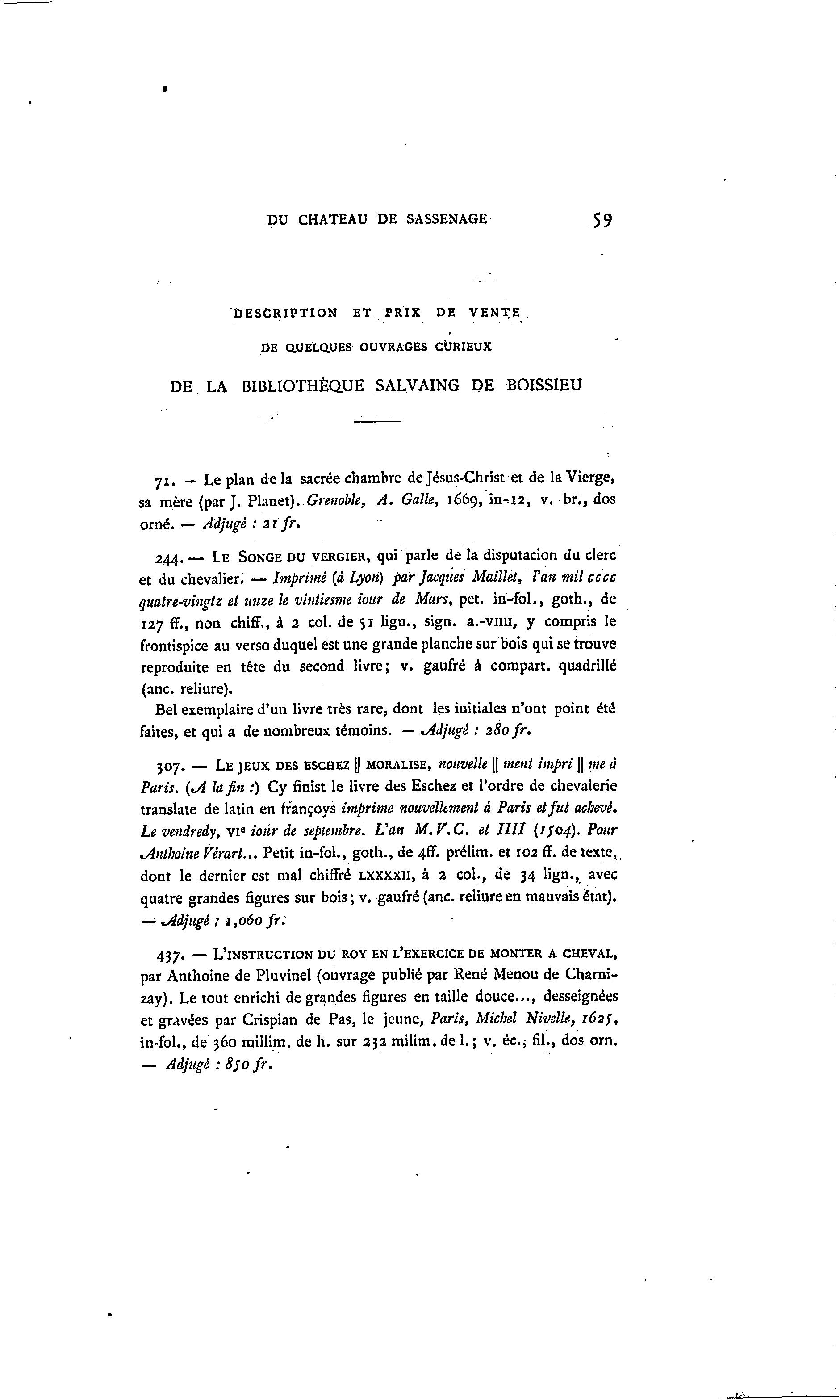 DE LA BIBLIOTHÈQUE SALVAING DE BOISSIEU