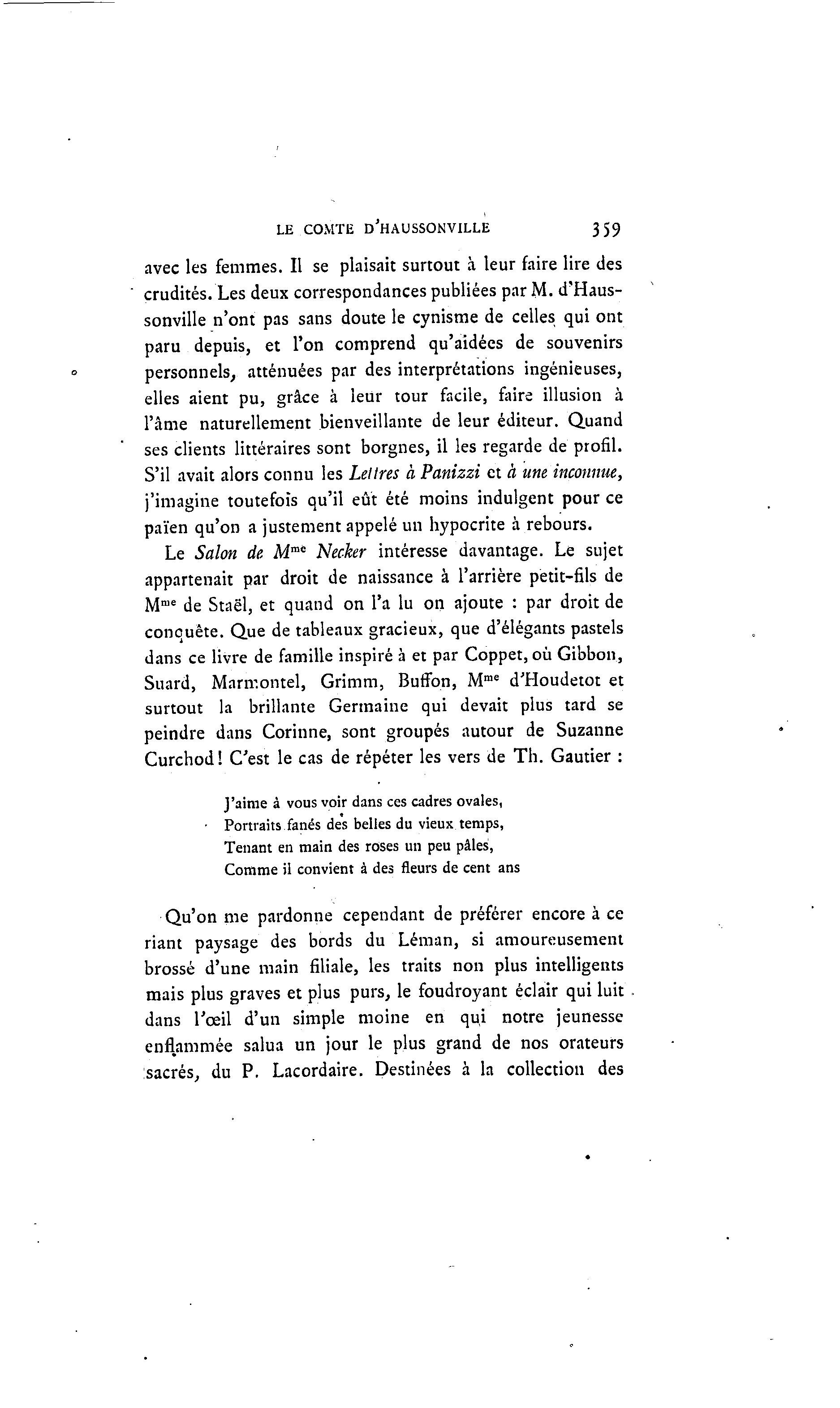 Mme de Staël, et quand on l'a lu on ajoute : par droit de