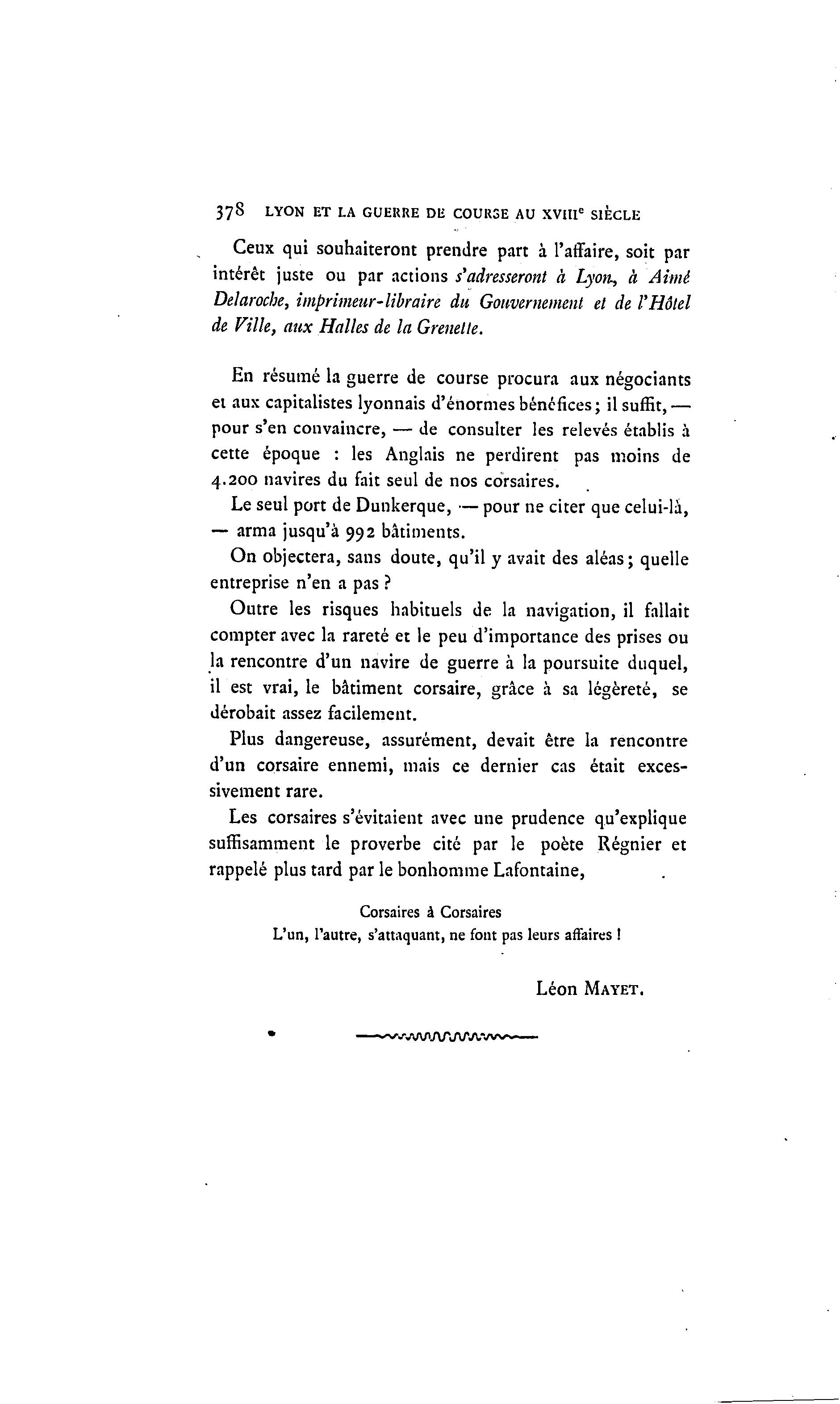 378   LYON ET LA GUERRE DE COURSE AU XVIIIe SIECLE