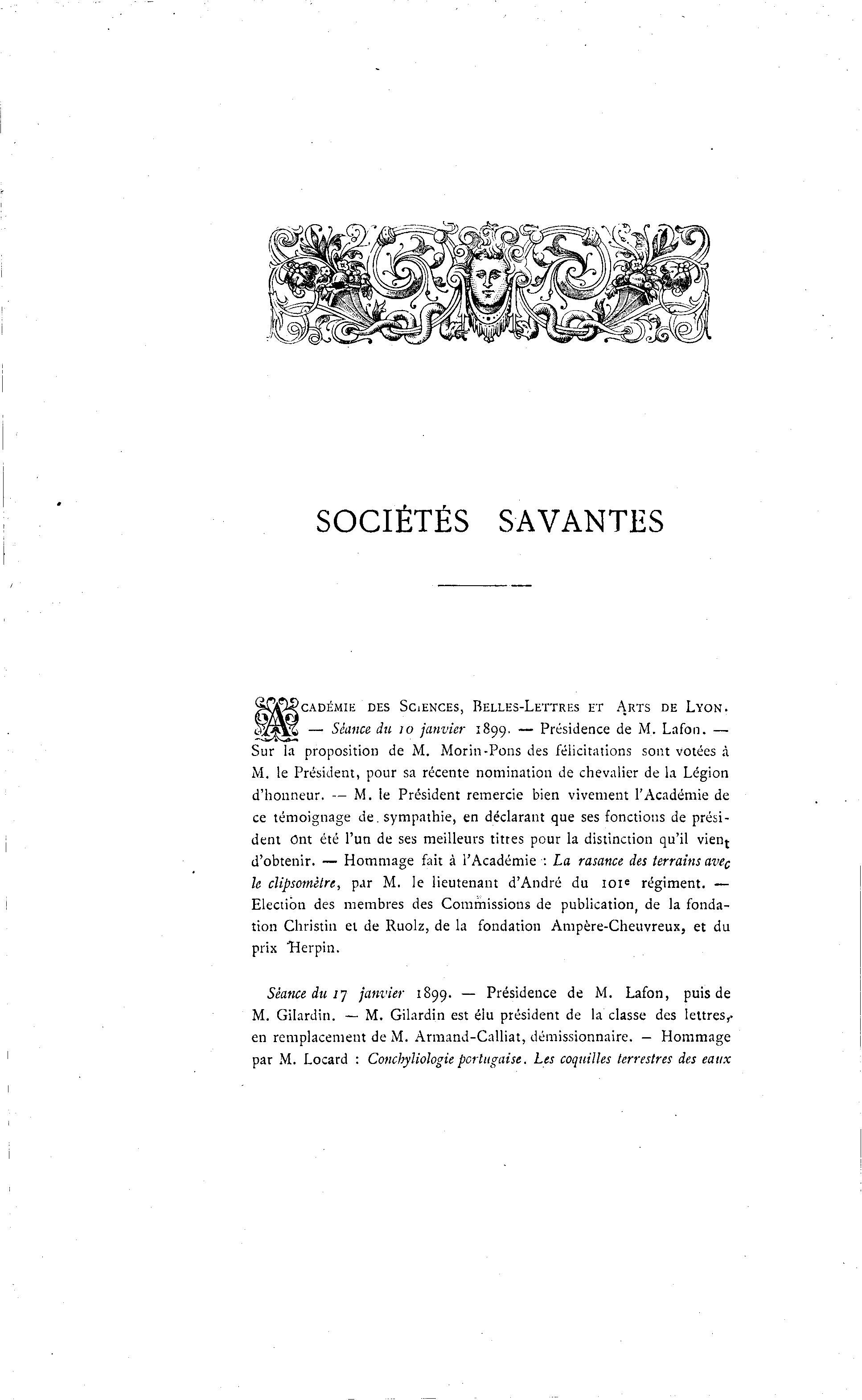 — Séance du 10 janvier 1899. — Présidence de M. Lafon. —
