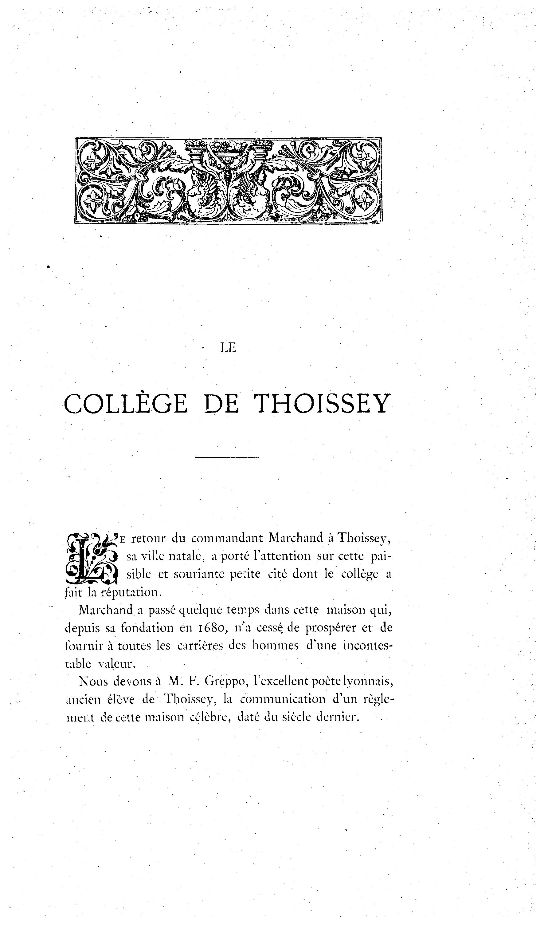 Nous devons à M. F. Greppo, l'excellent poète lyonnais,