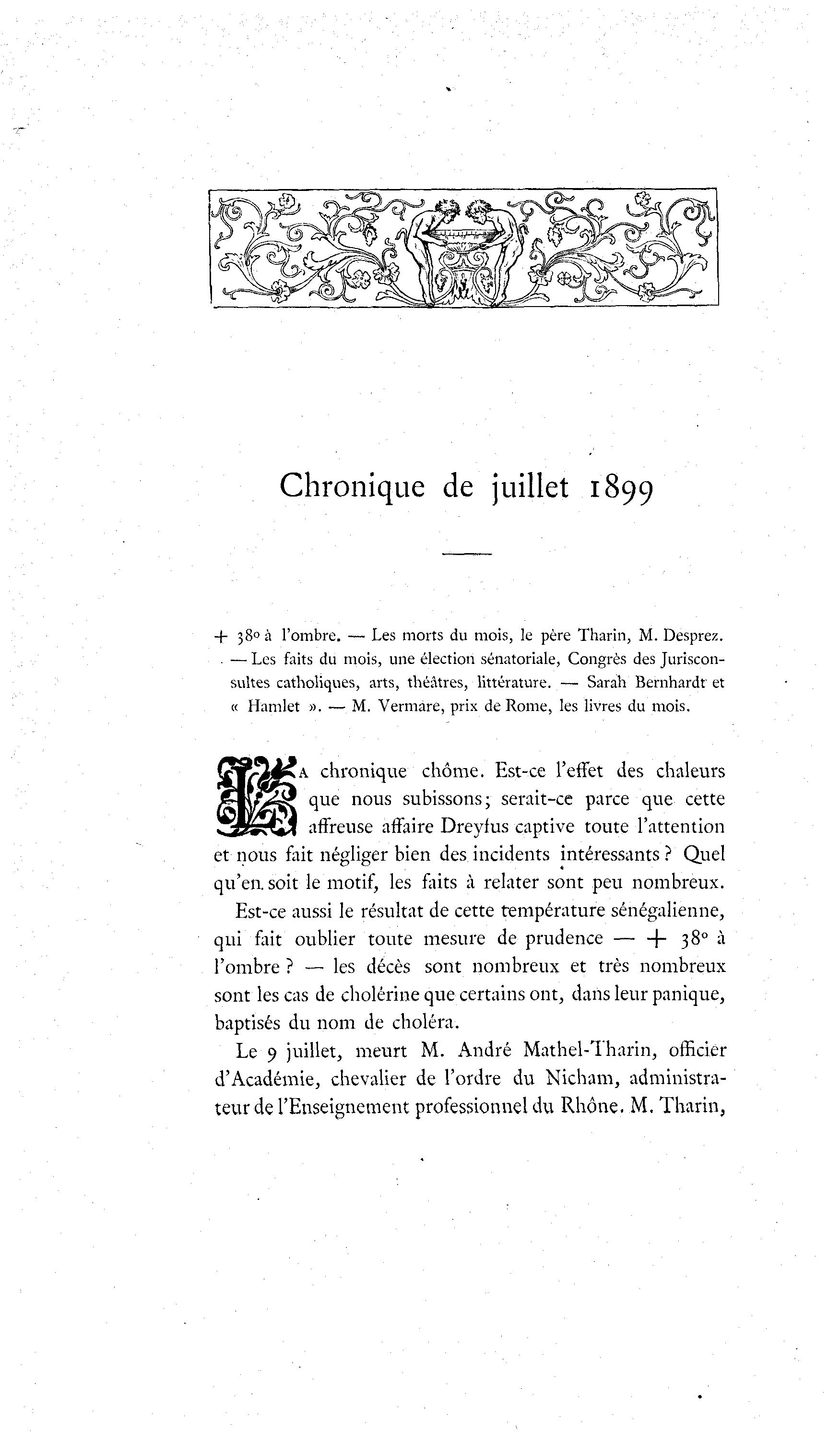 + 380 a l'ombre. — Les morts du mois, le père Tharin, M. Desprez.