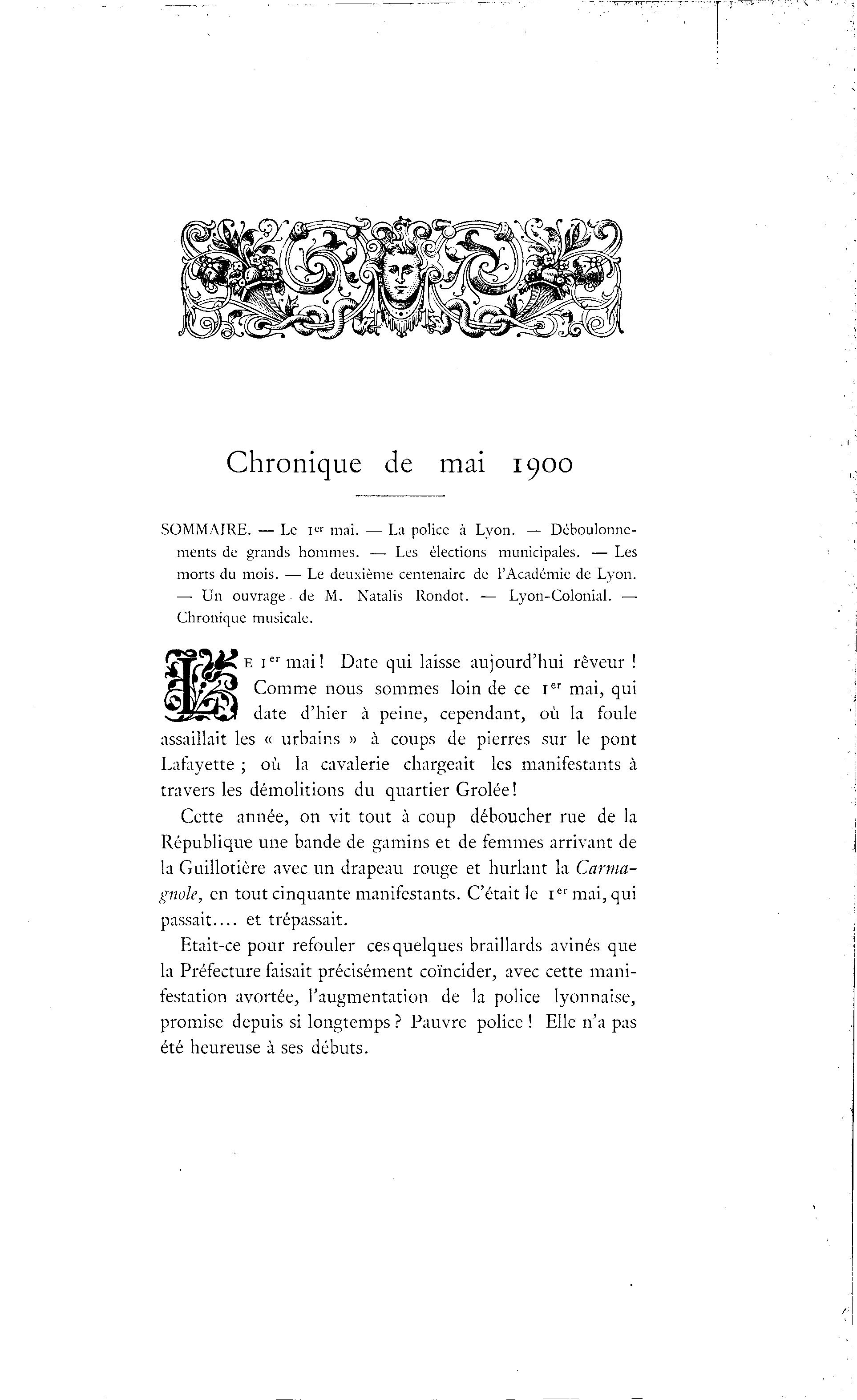 SOMMAIRE. — Le I e r mai. — La police à Lyon. — Déboulonne-