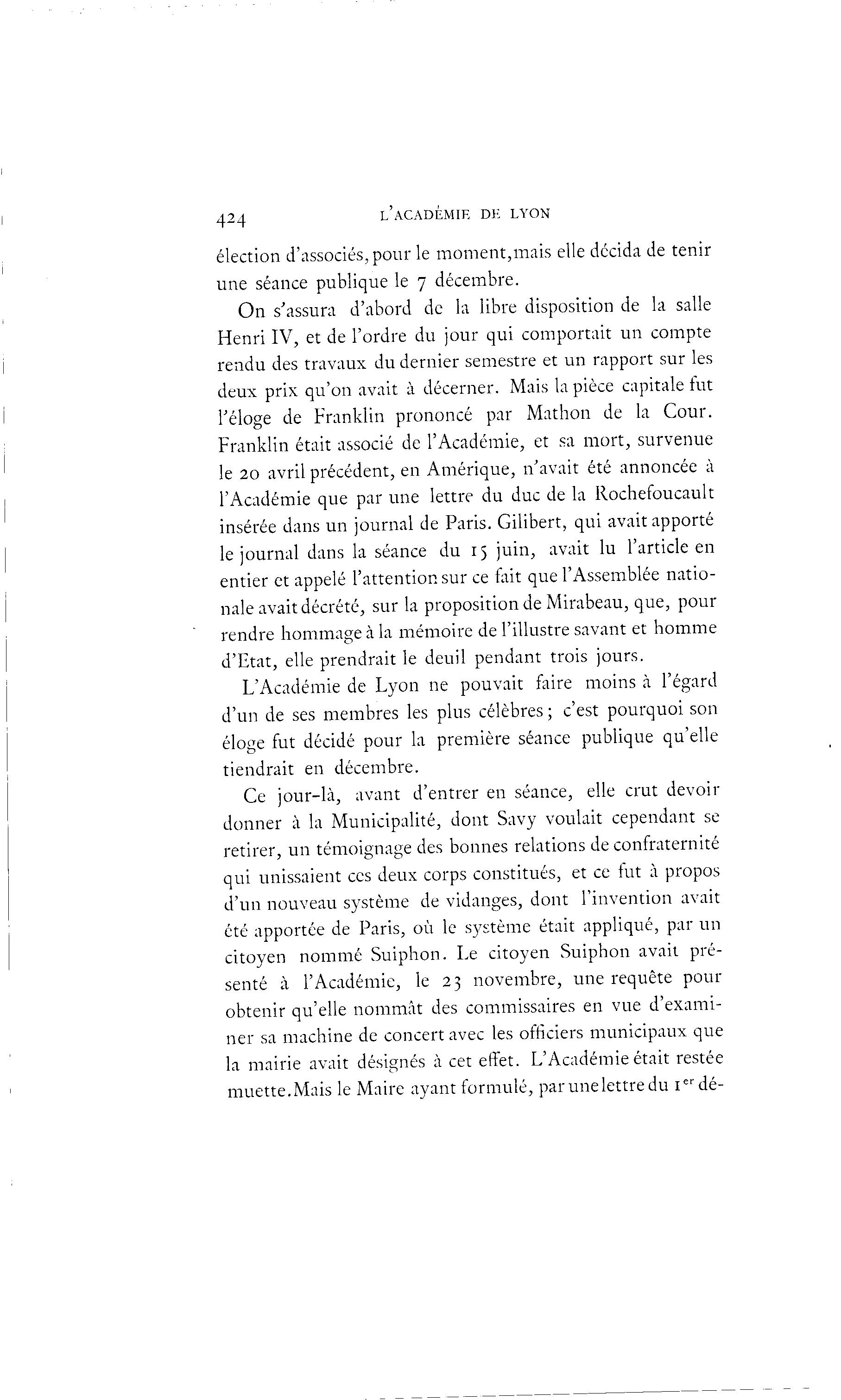 l'éloge de Franklin prononcé par Mathon de la Cour.