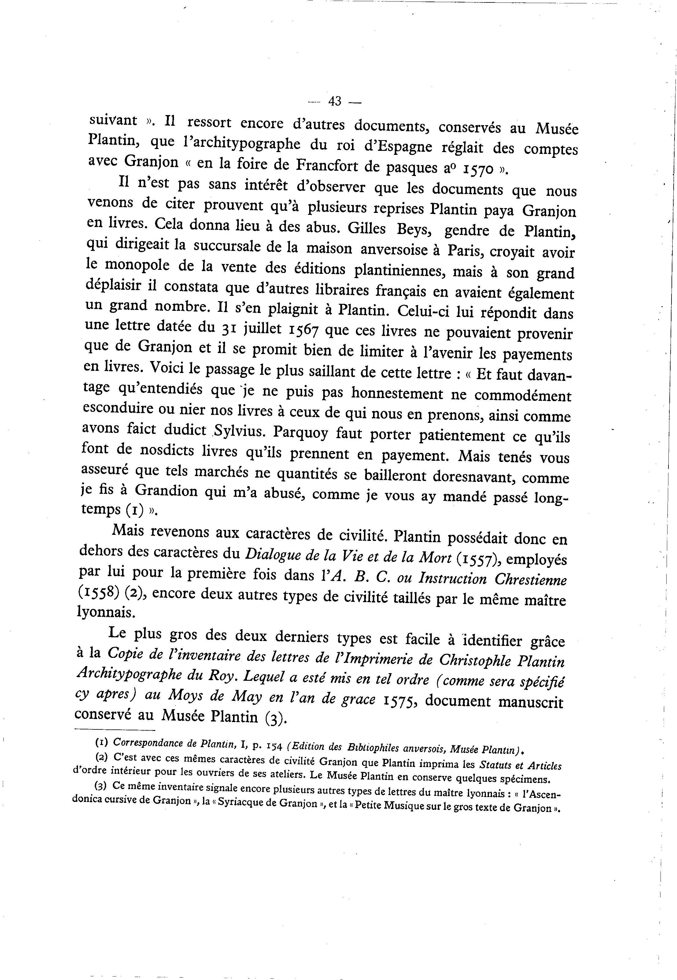 (1) Correspondance de Plantin, I, p. 154 (Edition des Bibliophiles anversois, Musée Plantin).
