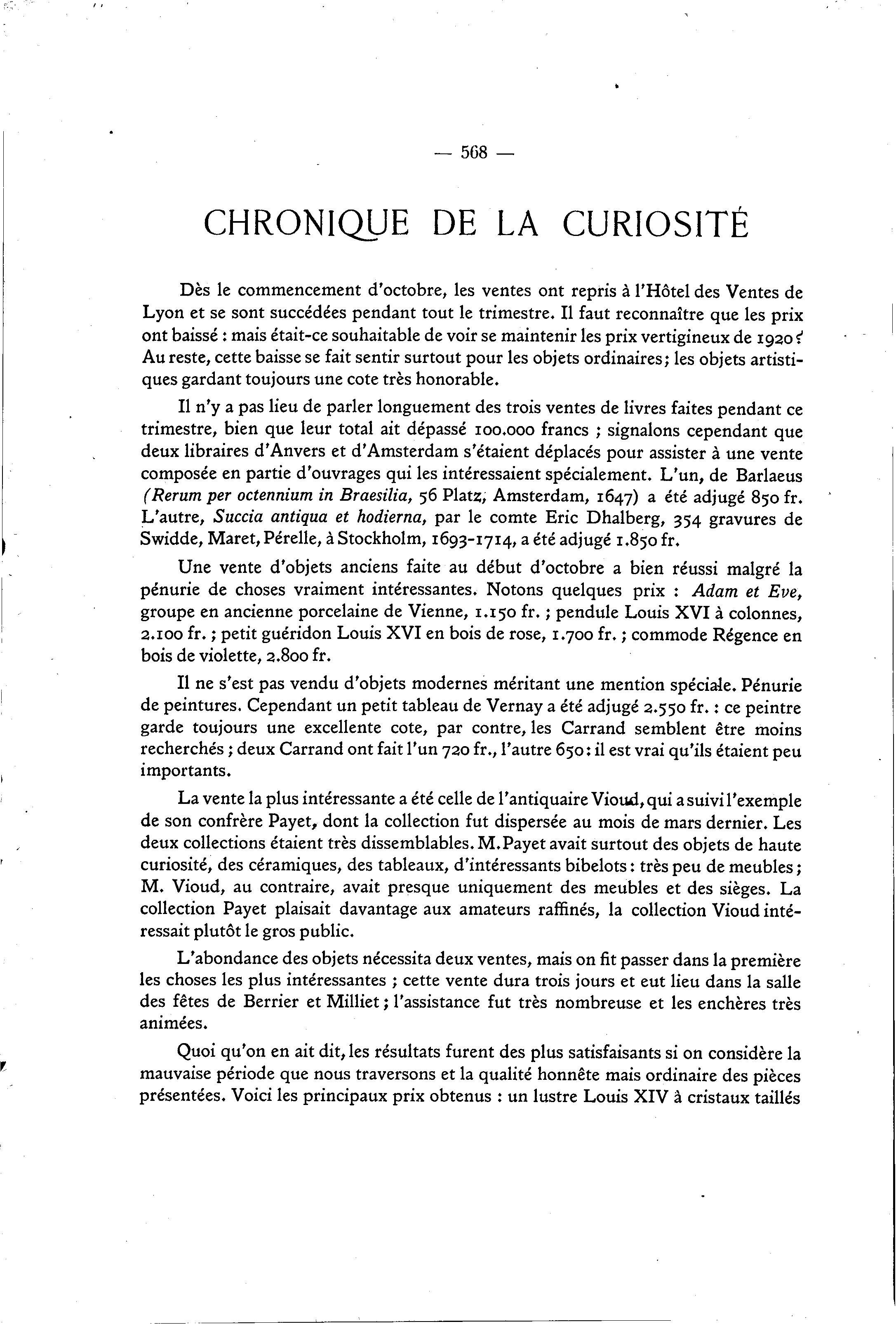 Il ne s'est pas vendu d'objets modernes méritant une mention spéciale. Pénurie