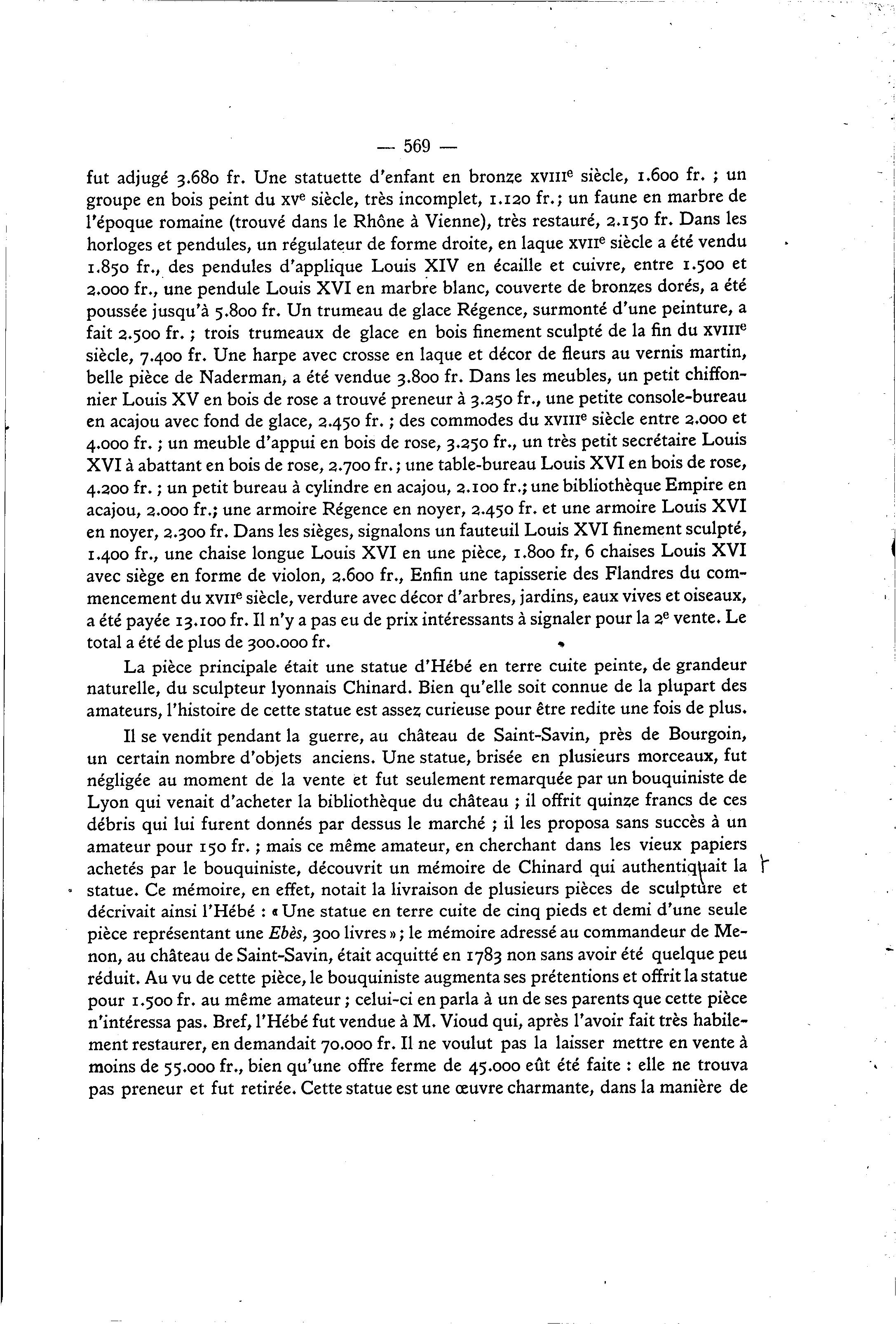 Il se vendit pendant la guerre, au château de Saint-Savin, près de Bourgoin,