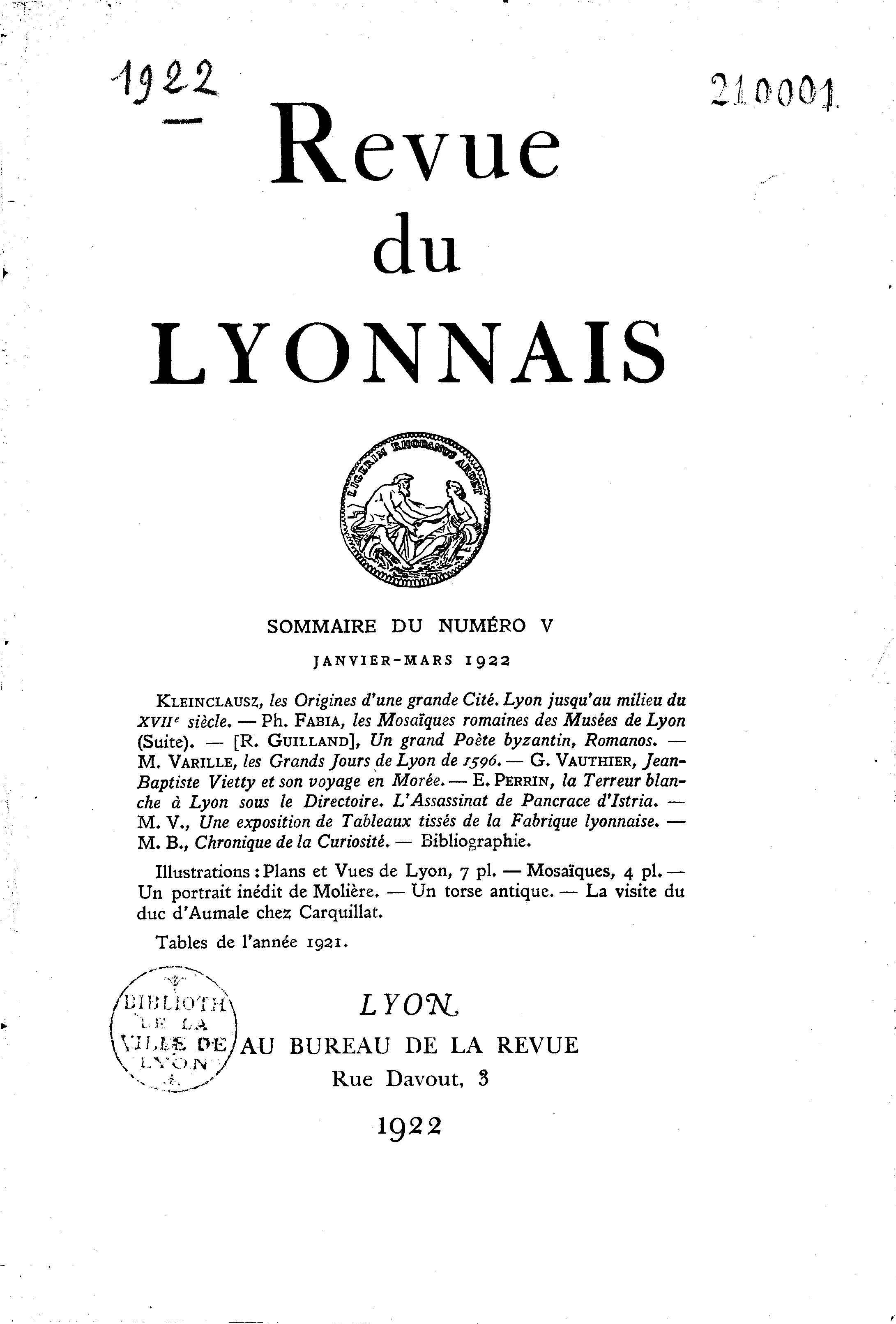 XVIIe siècle. — Ph. FABIA, les Mosaïques romaines des Musées de Lyon