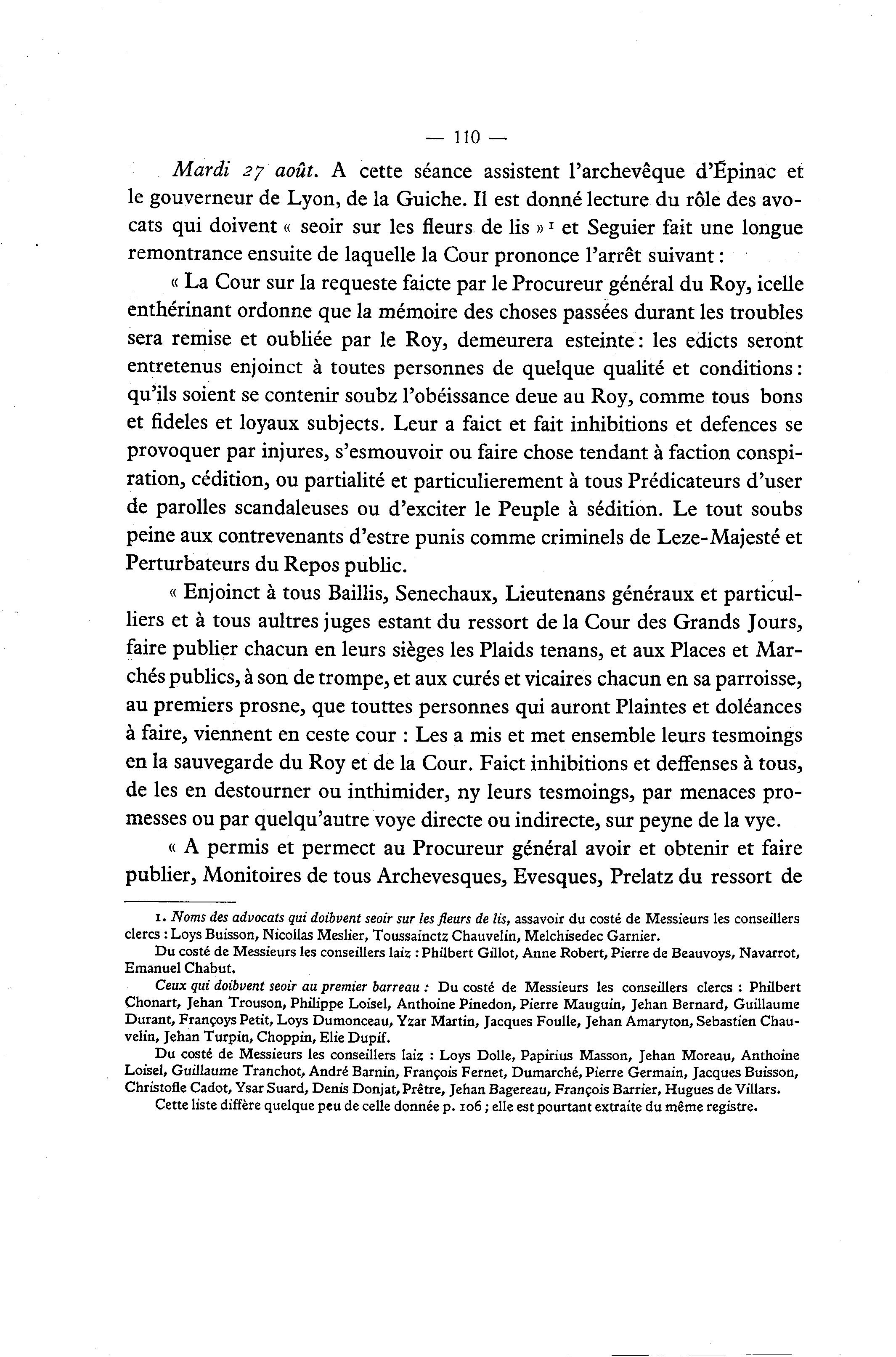 le gouverneur de Lyon, de la Guiche. Il est donné lecture du rôle des avo-