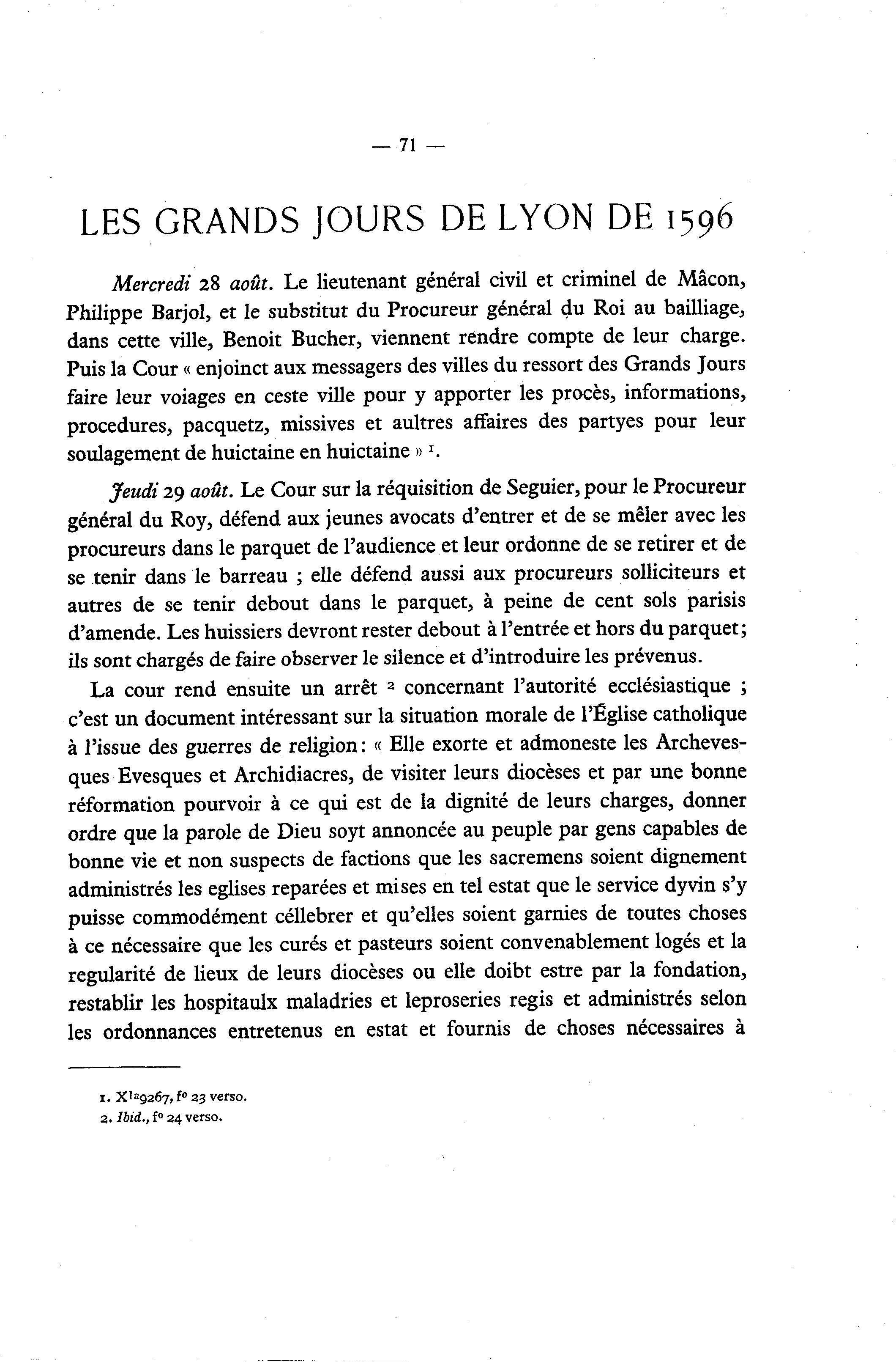 LES GRANDS JOURS DE LYON DE 1596