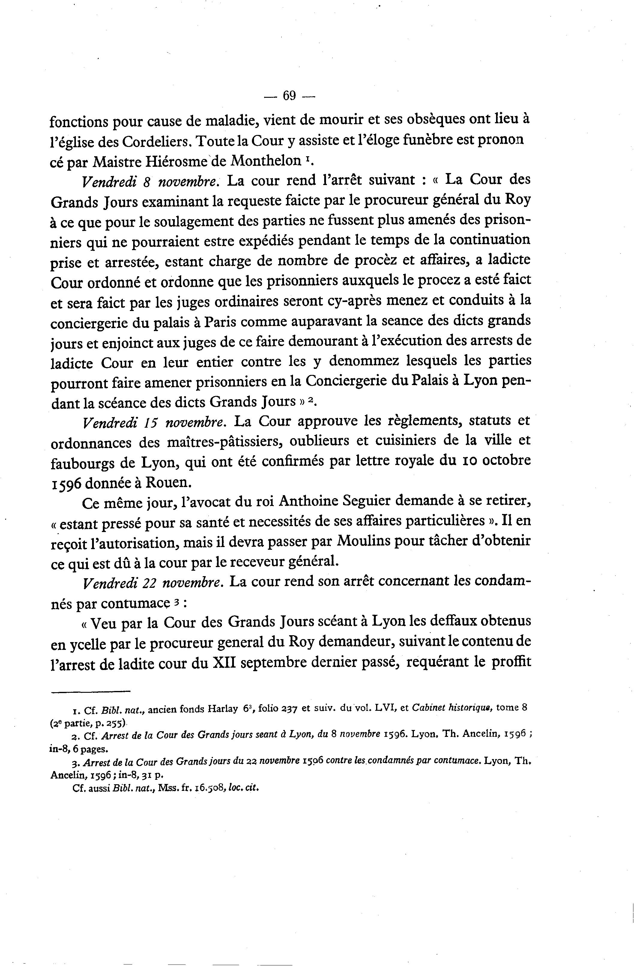 2. Cf. Arrest de la Cour des Grands jours séant à Lyon, du 8 novembre 1596. Lyon. Th. Ancelin, 1596 ;