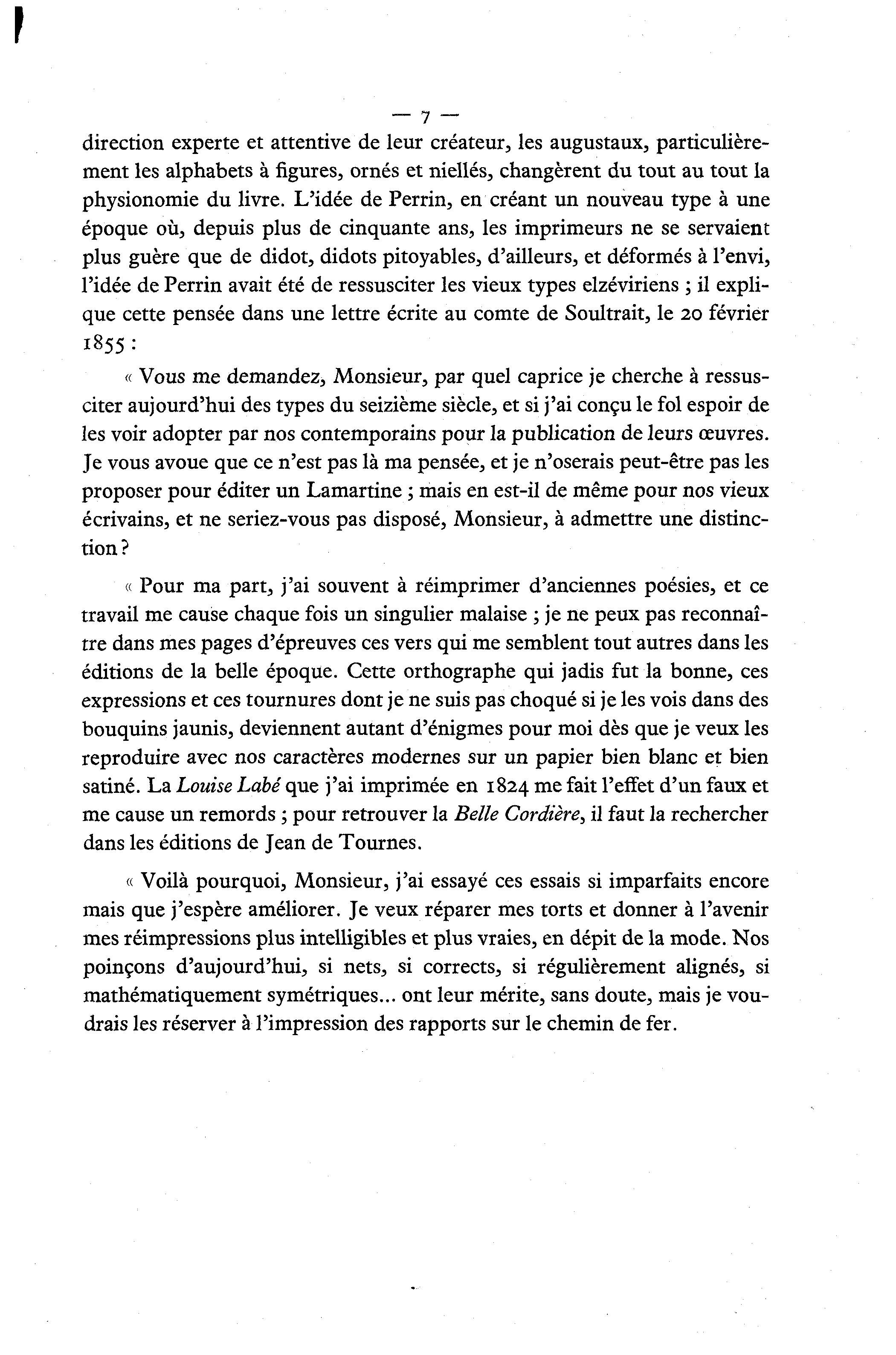 l'idée de Perrin avait été de ressusciter les vieux types elzéviriens ; il expli-