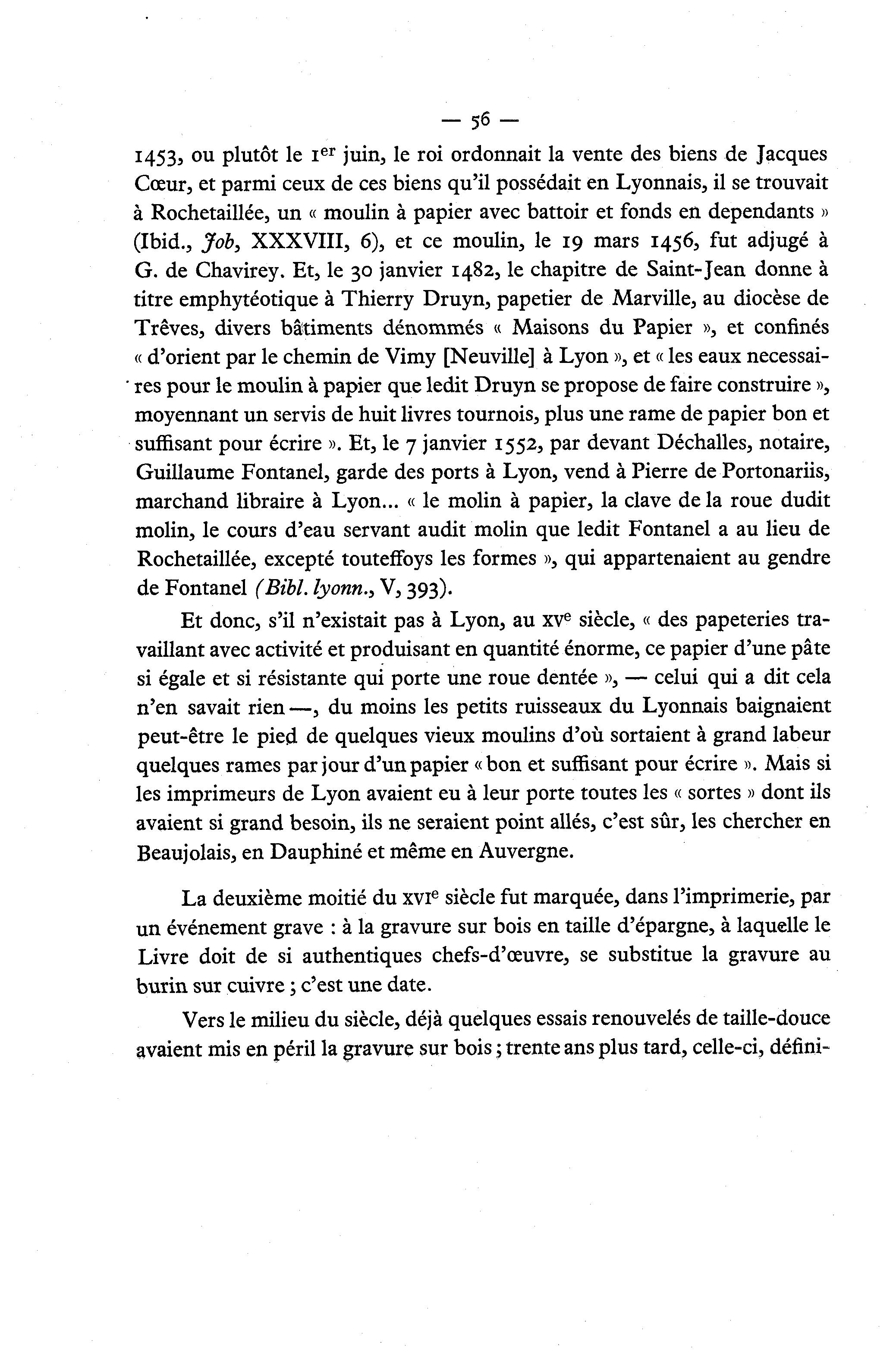 Et donc, s'il n'existait pas à Lyon, au xve siècle, « des papeteries tra-