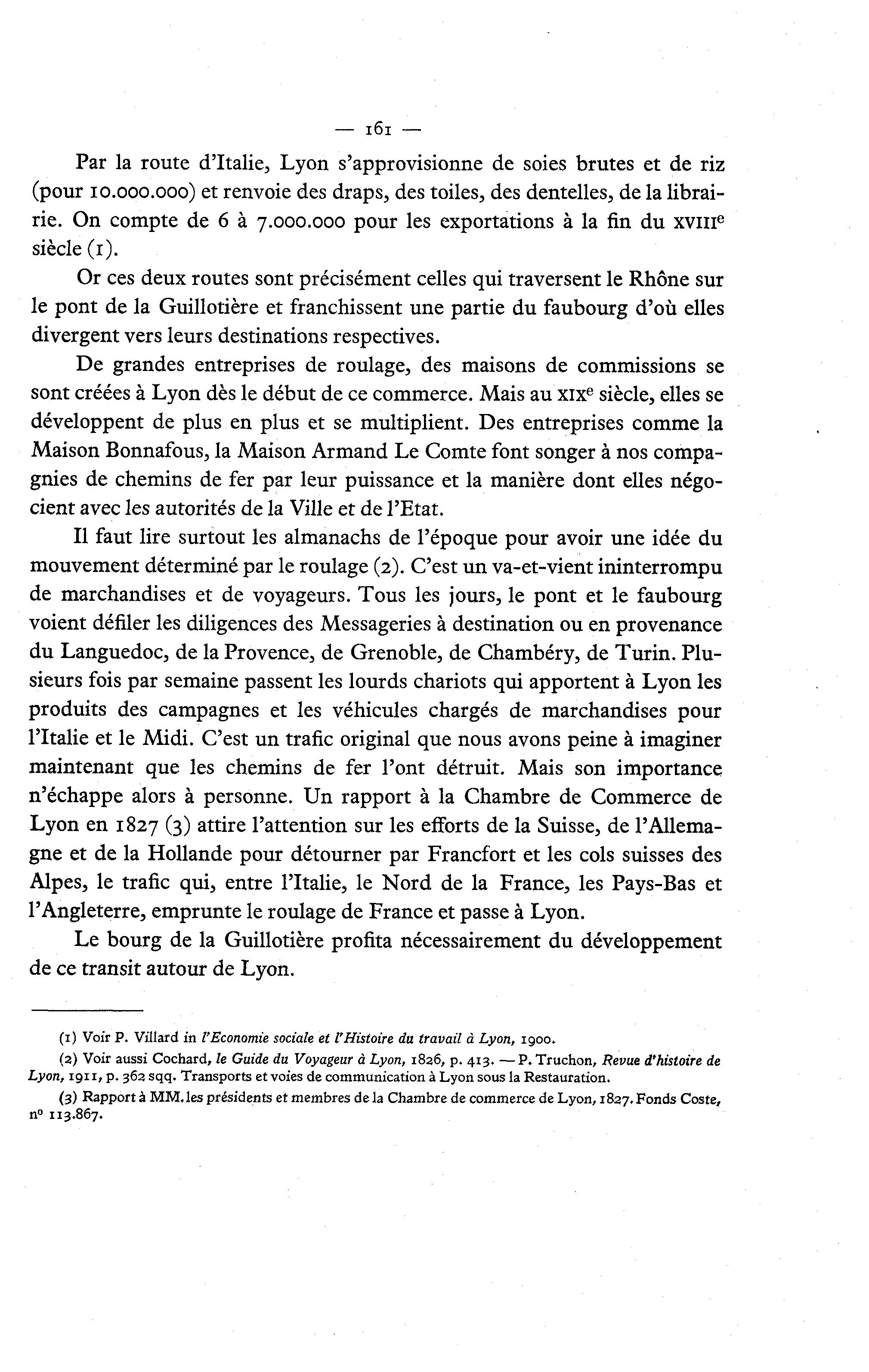 (3) Voir aussi Cochard, le Guide du Voyageur à Lyon, 1836, p. 413. — P. Truchon, Revue d'histoire de