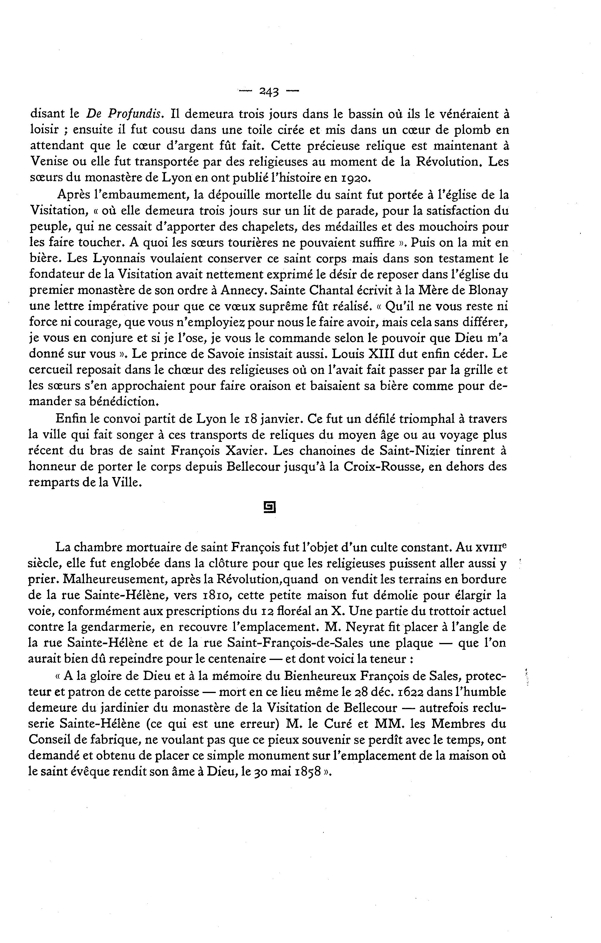 fondateur de la Visitation avait nettement exprimé le désir de reposer dans l'église du