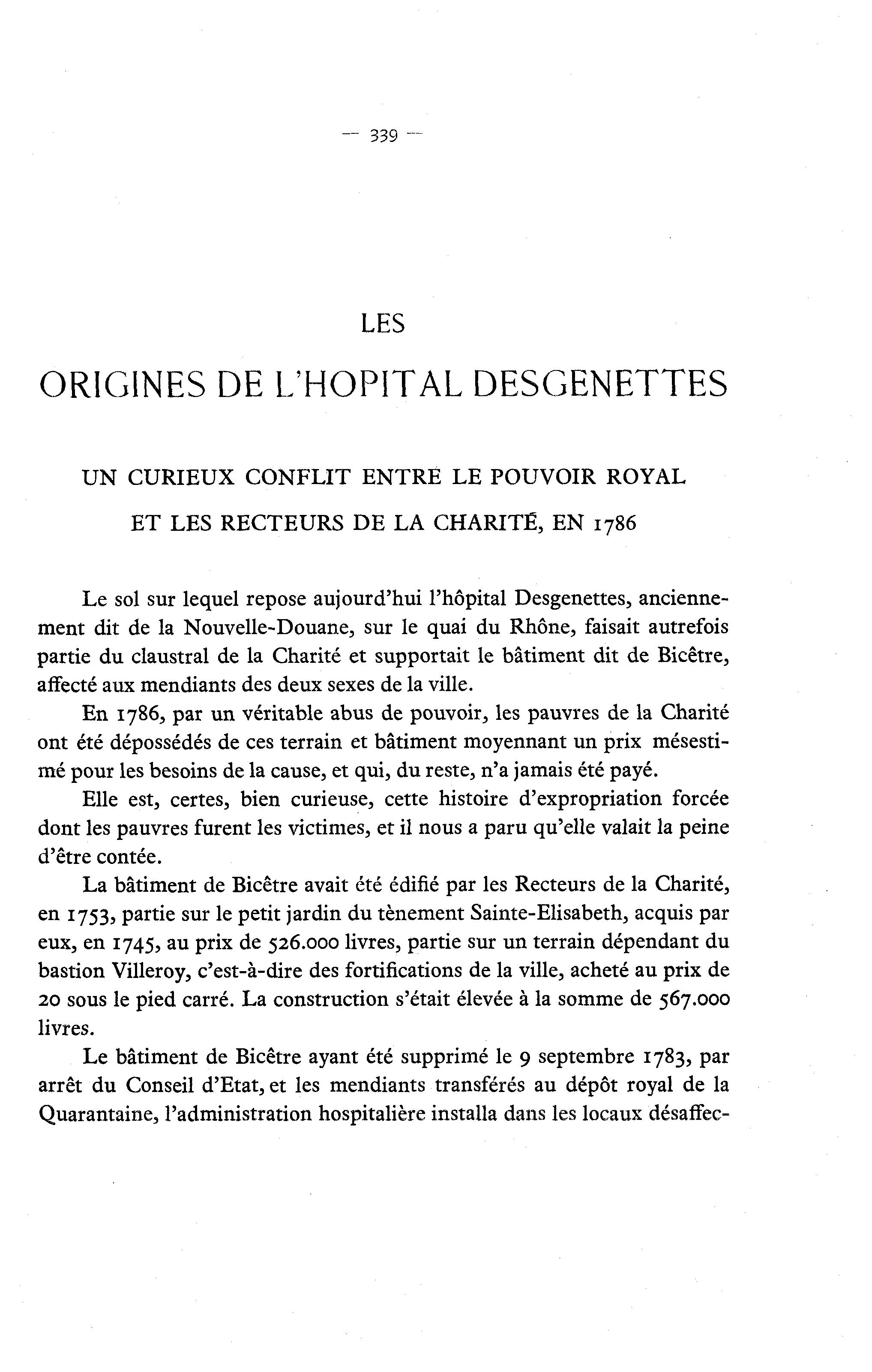 En 1786, par un véritable abus de pouvoir, les pauvres de la Charité