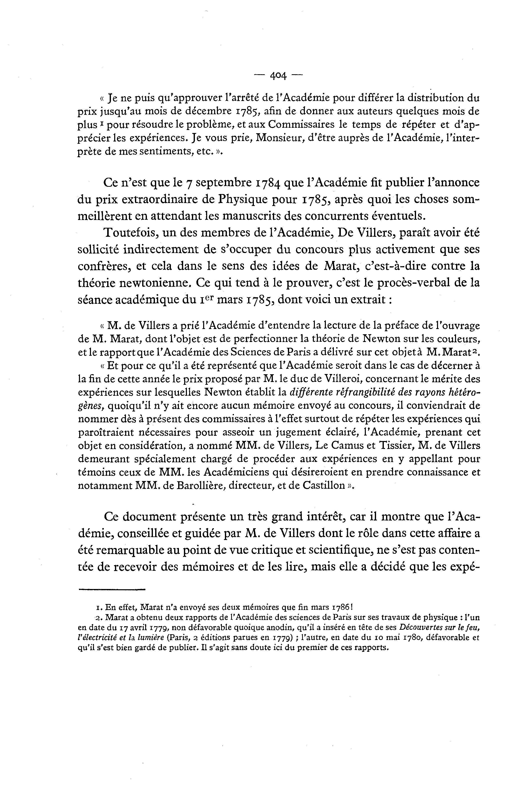 1. En effet, Marat n'a envoyé ses deux mémoires que fin mars 1786!