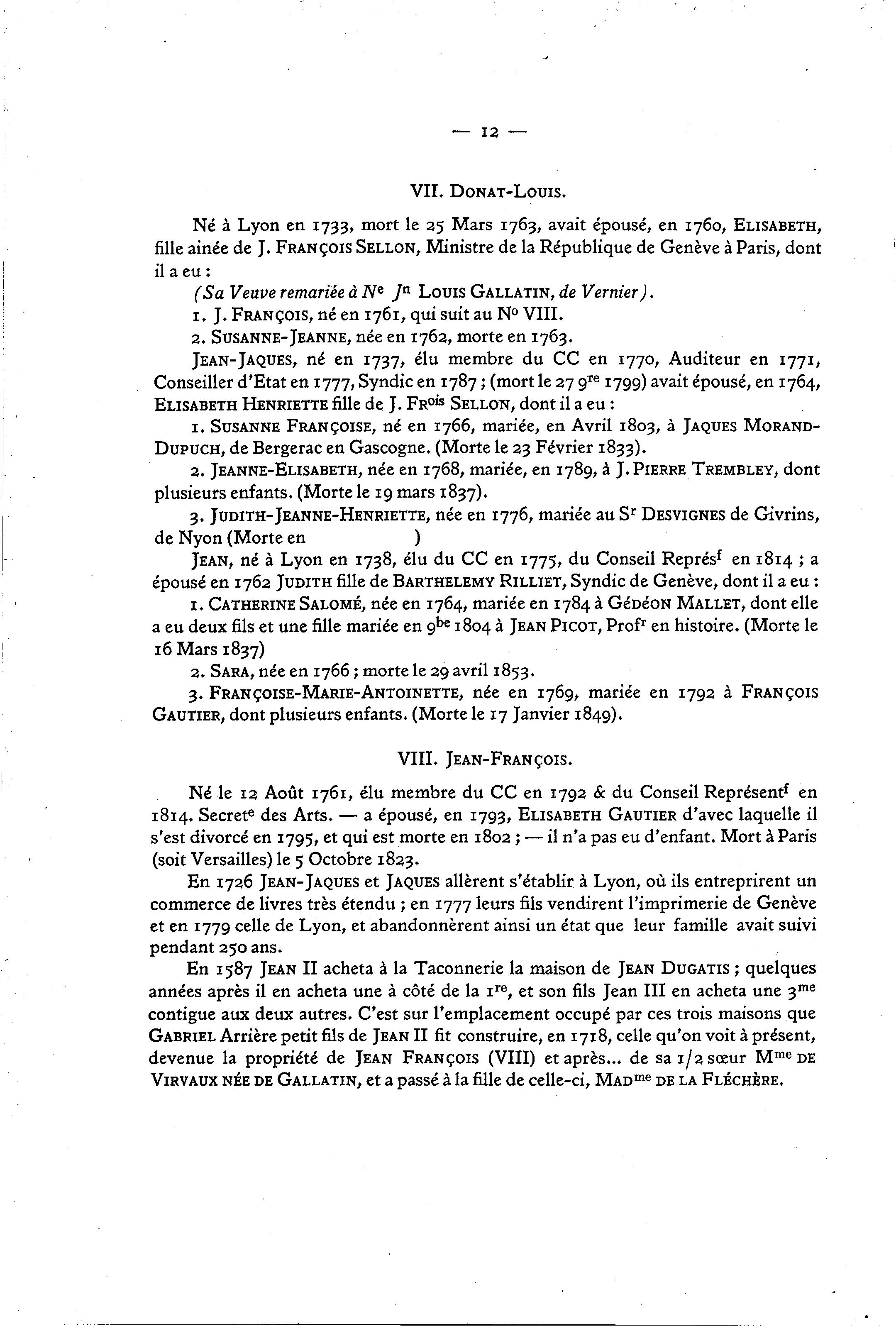 épousé en 1762 JUDITH fille de BARTHÉLÉMY RILLIET, Syndic de Genève, dont il a eu :