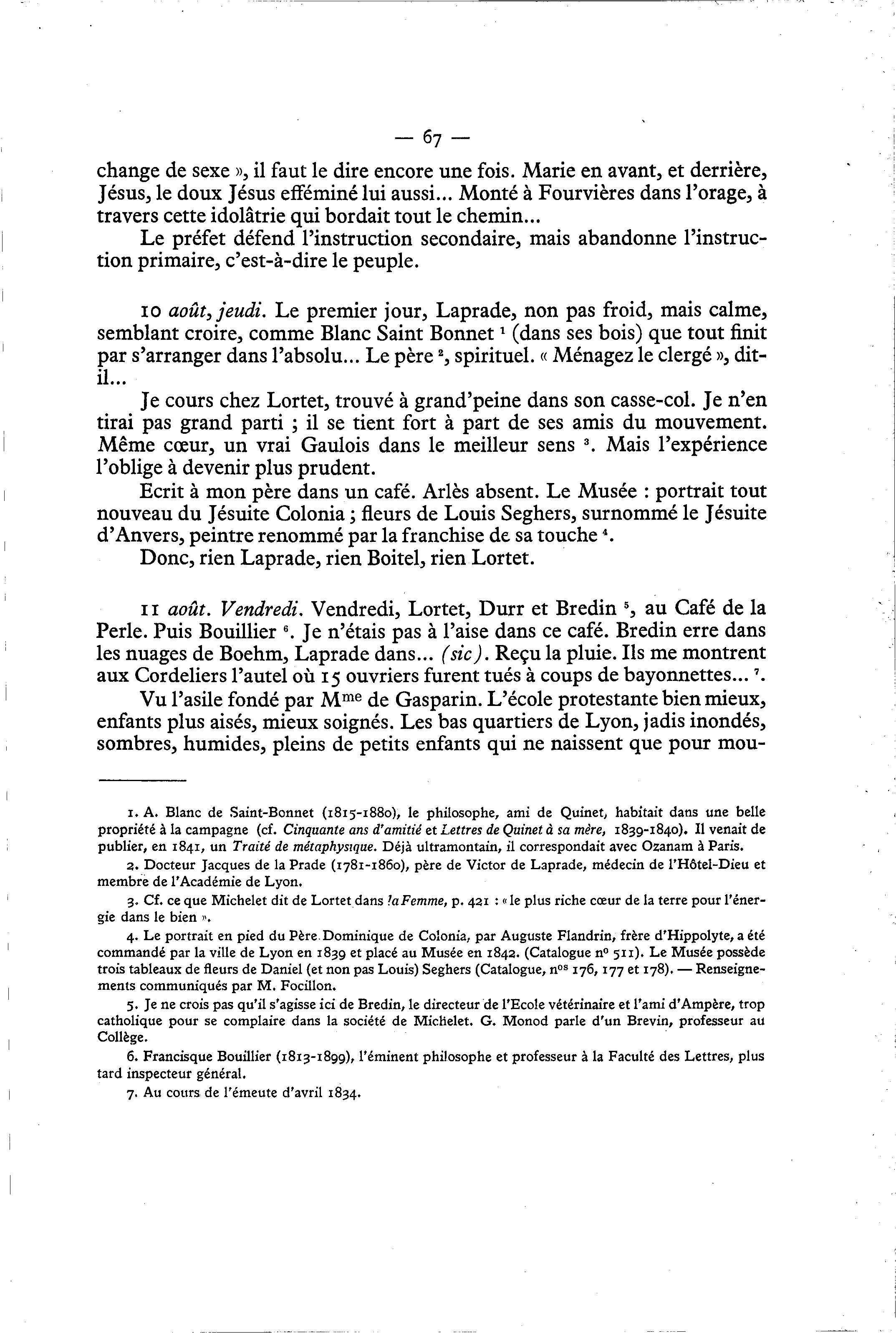 1. A. Blanc de Saint-Bonnet (1815-1880), le philosophe, ami de Quinet, habitait dans une belle