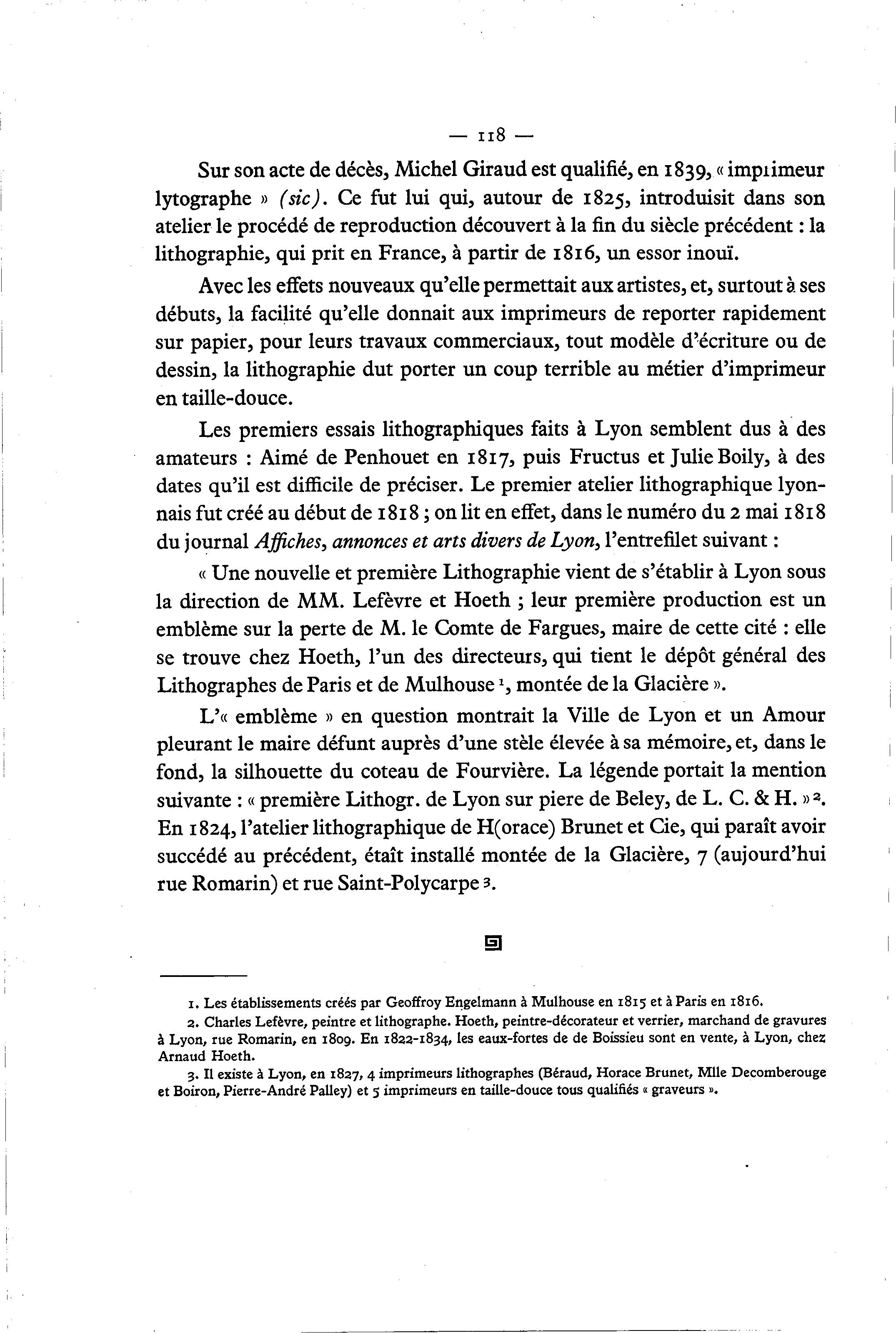 dates qu'il est difficile de préciser. Le premier atelier lithographique lyon-