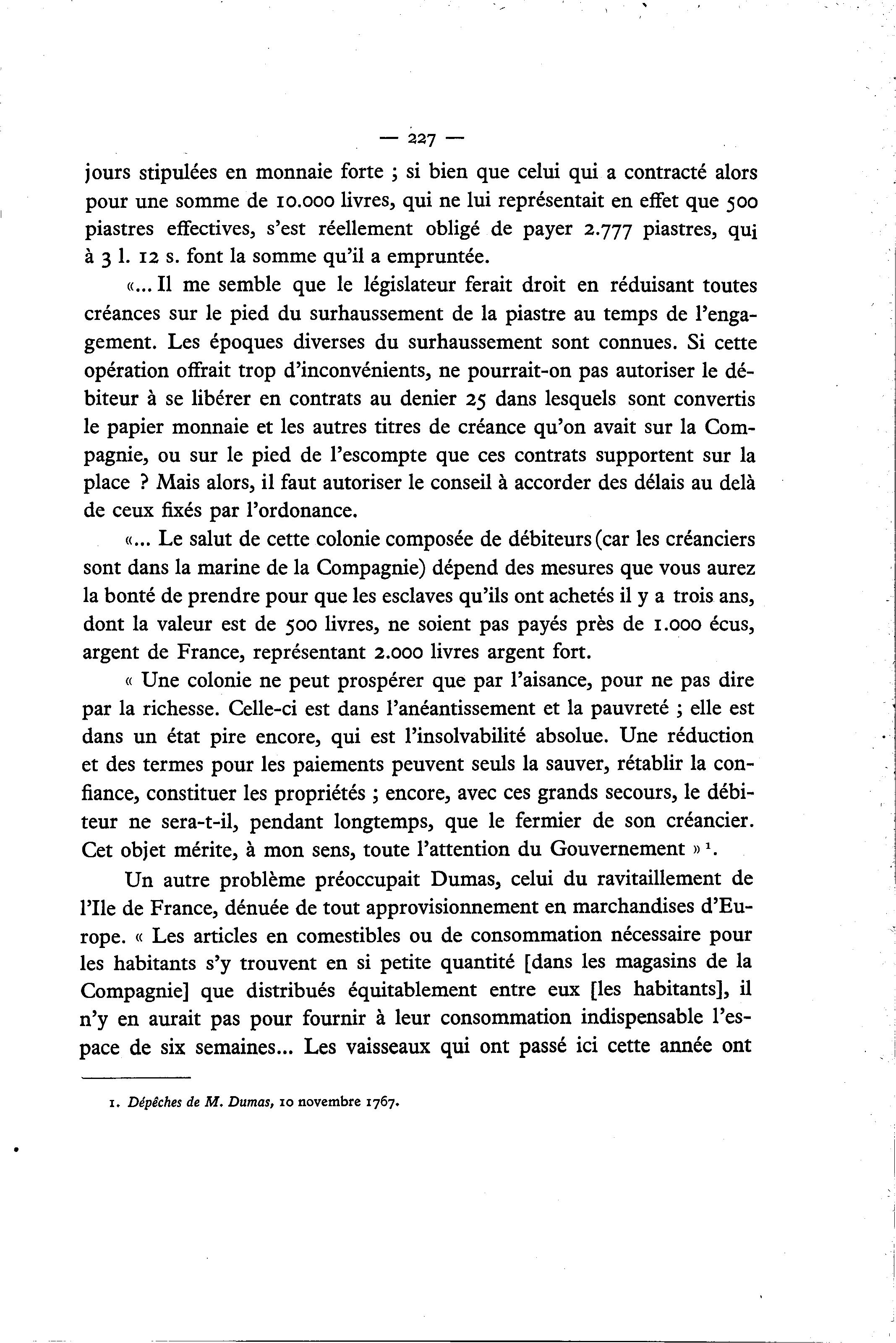1. Dépêches de M. Dumas, 10 novembre 1767.