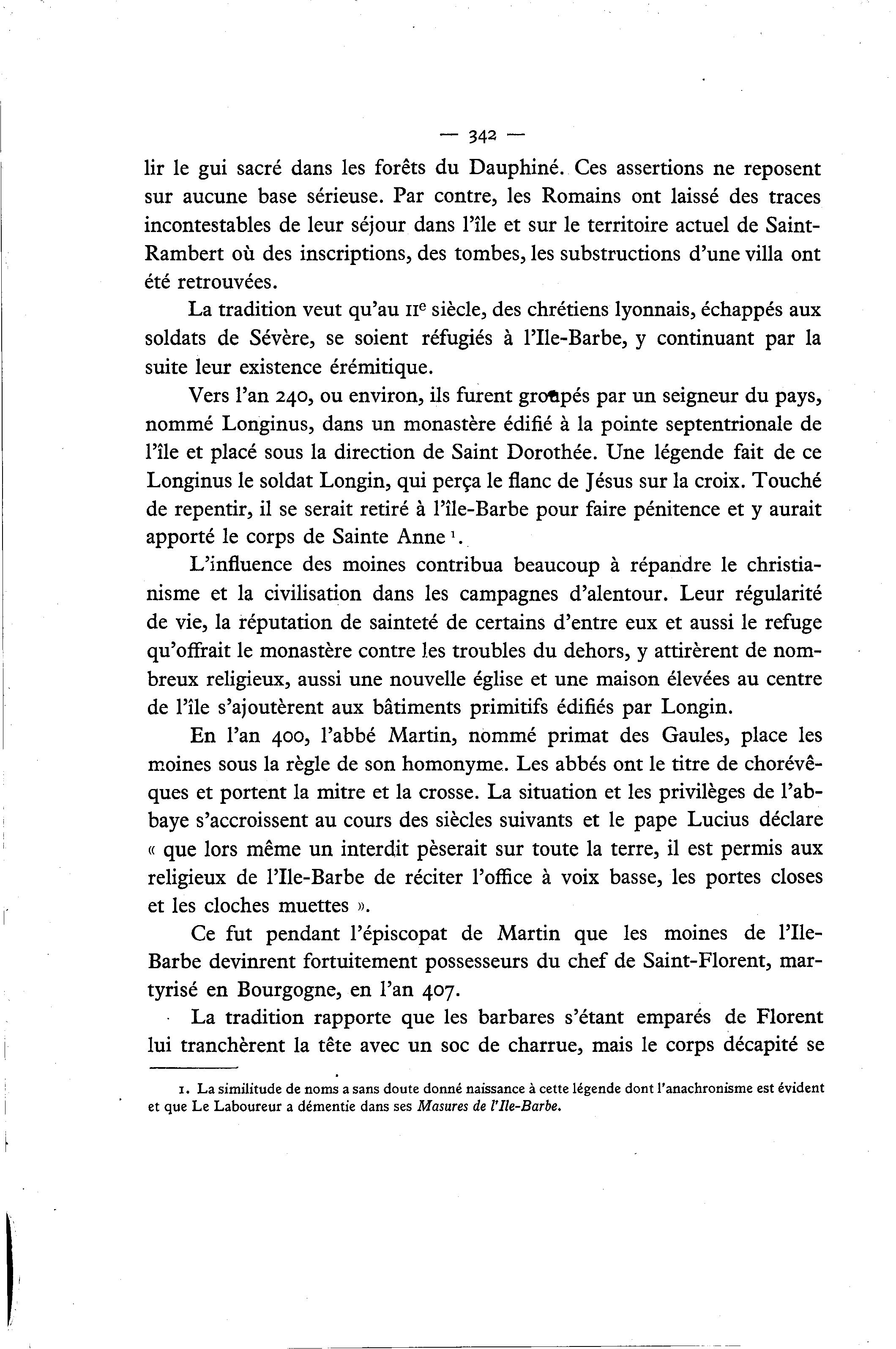 soldats de Sévère, se soient réfugiés à l'Ile-Barbe, y continuant par la