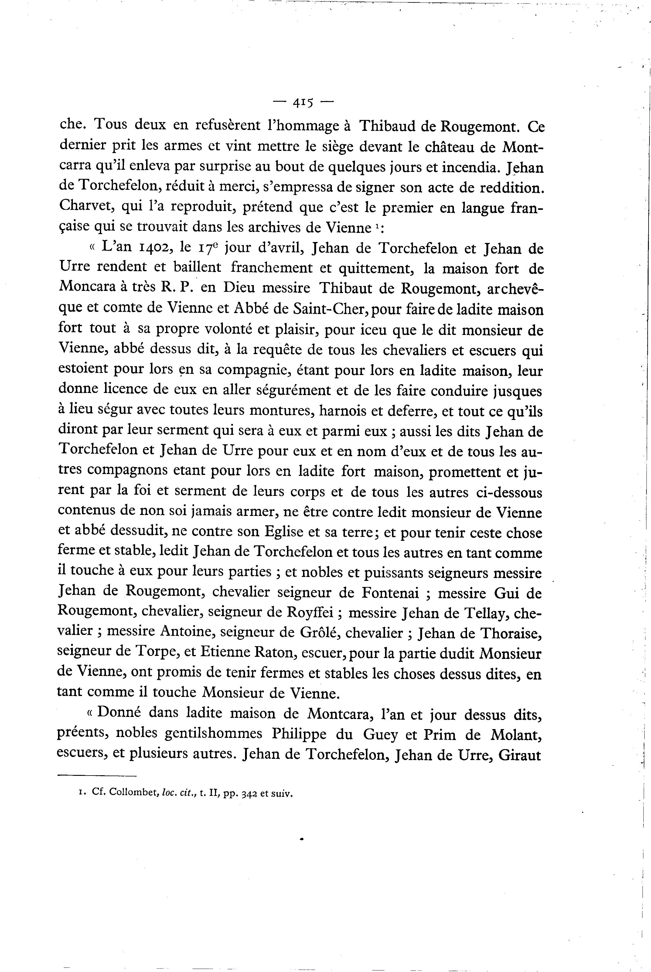 « L'an 1402, le 17e jour d'avril, Jehan de Torchefelon et Jehan de