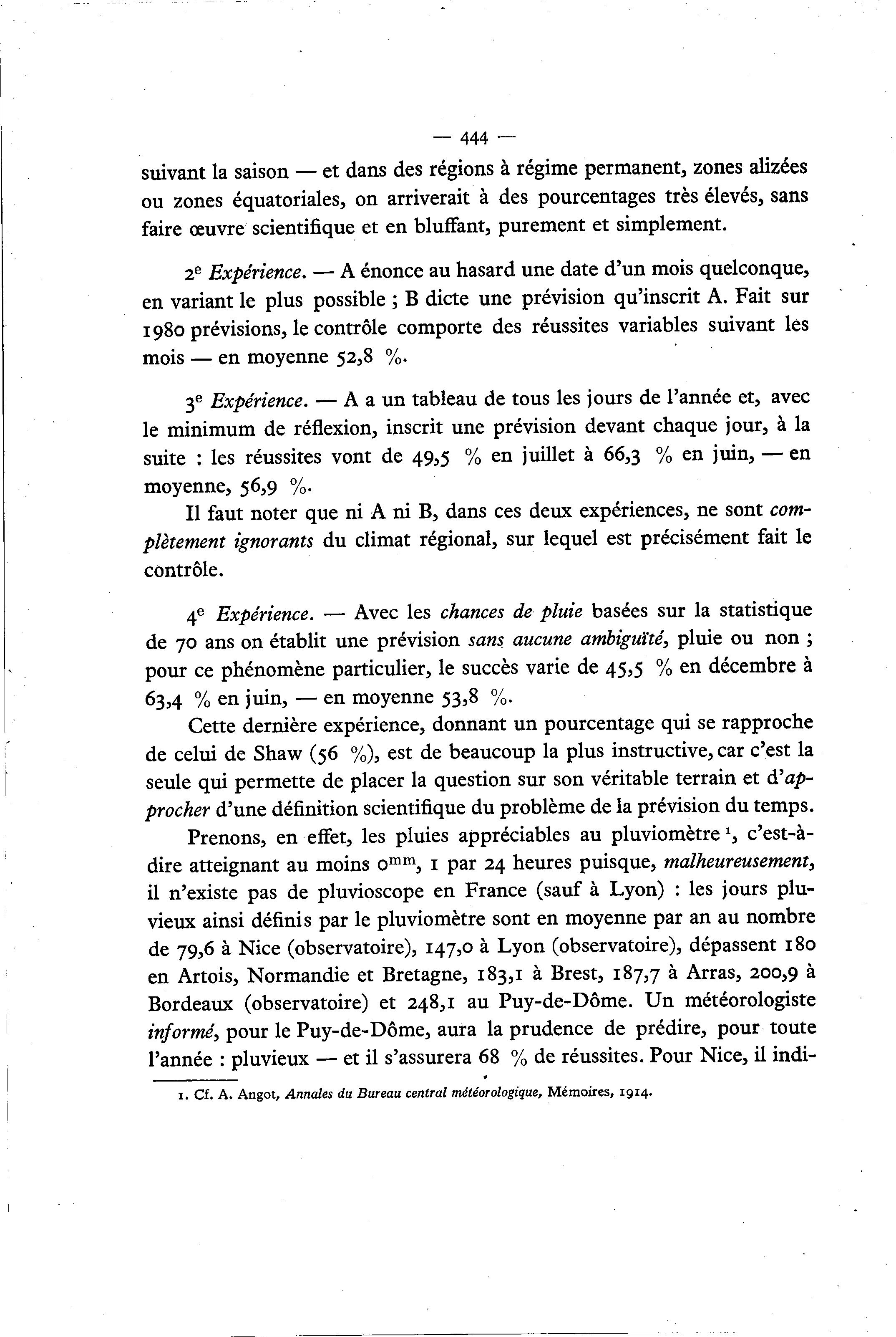 de 70 ans on établit une prévision sans aucune ambiguïté, pluie ou non ;
