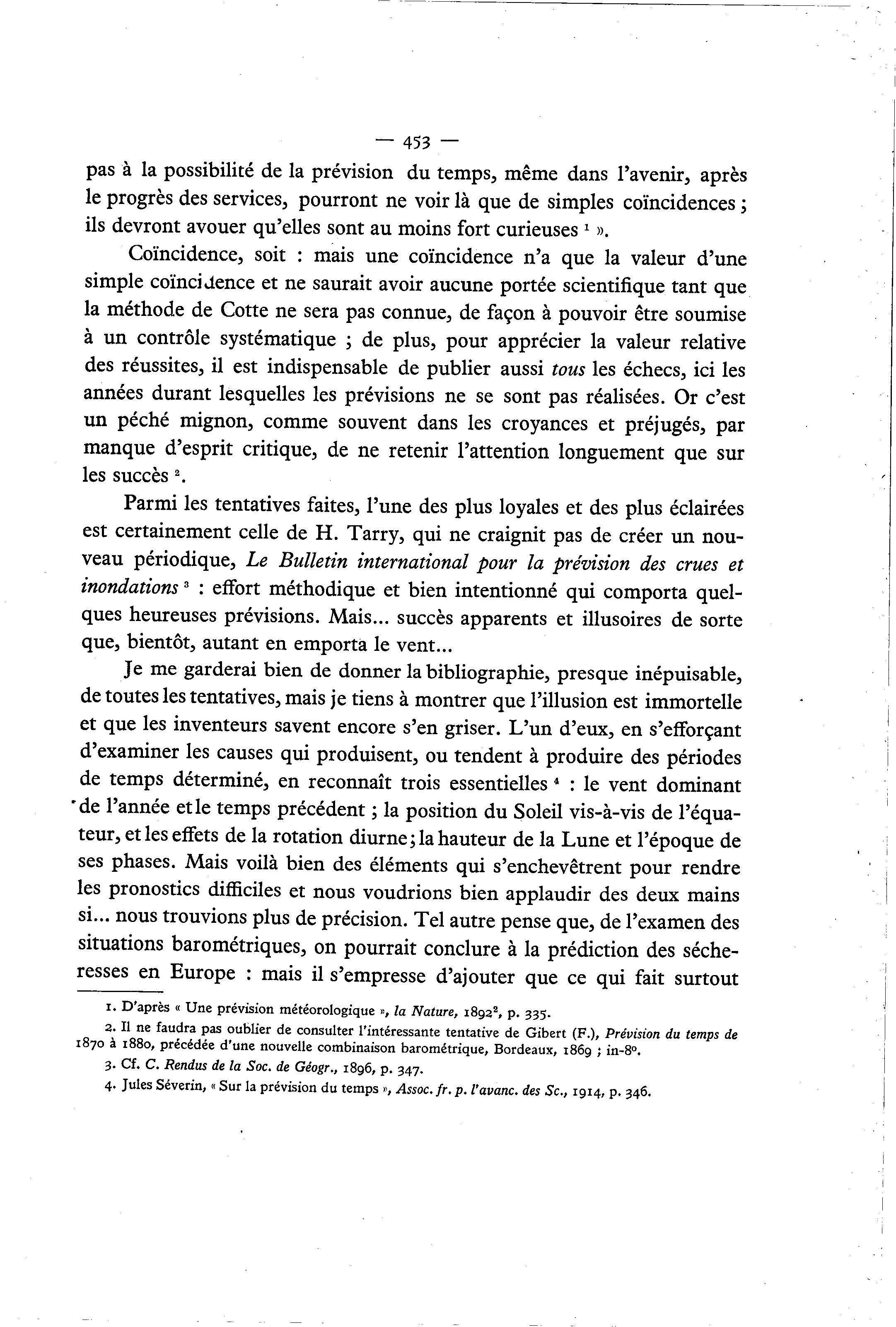 4. Jules Séverin, « Sur la prévision du temps », Assoc. fr. p. l'avanc. des Se, 1914, p. 346.