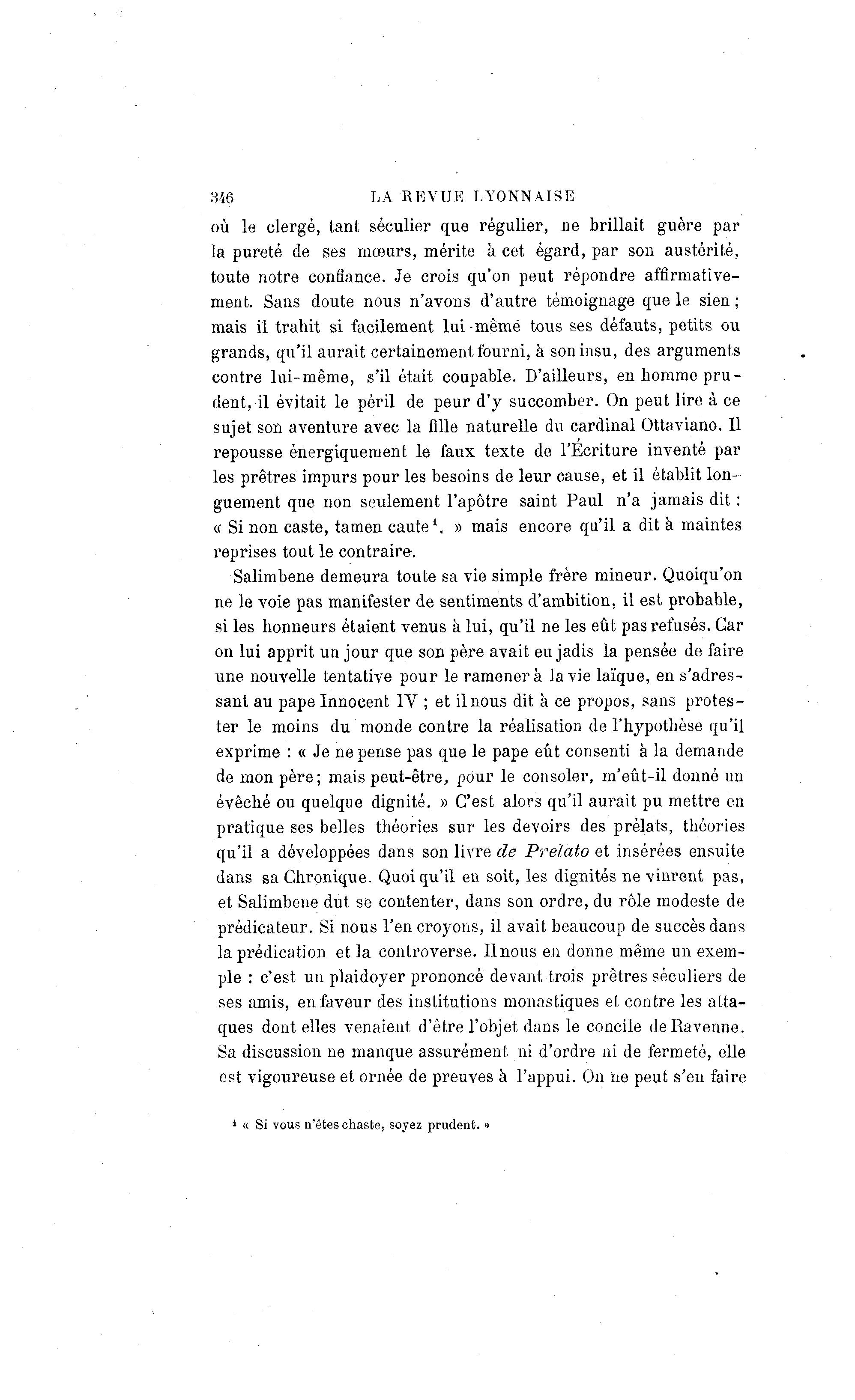 « Si non caste, tamen caute1, » mais encore qu'il a dit à maintes