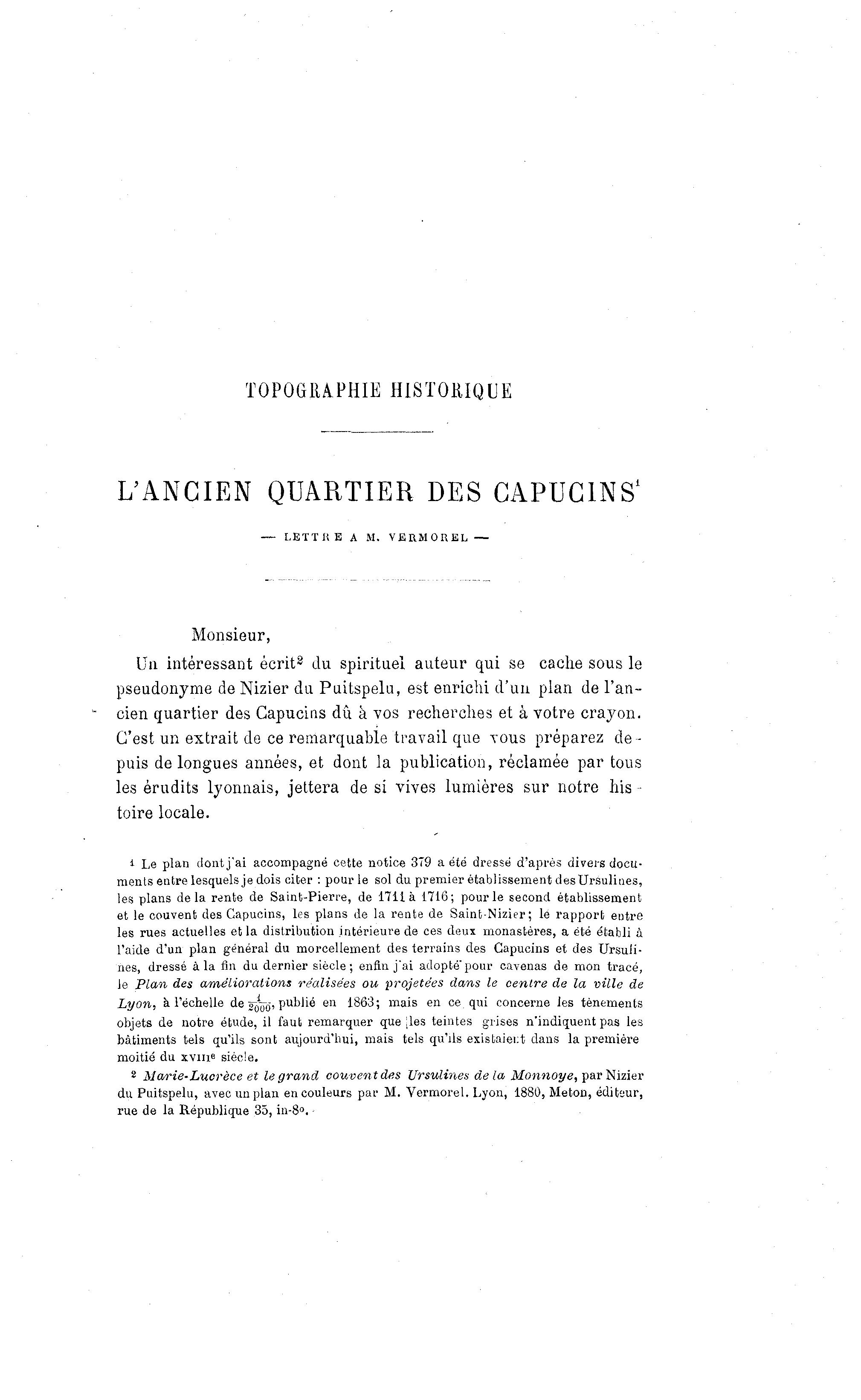et le couvent des Capucins, les plans de la rente de Saint-Nizier; le rapport entre