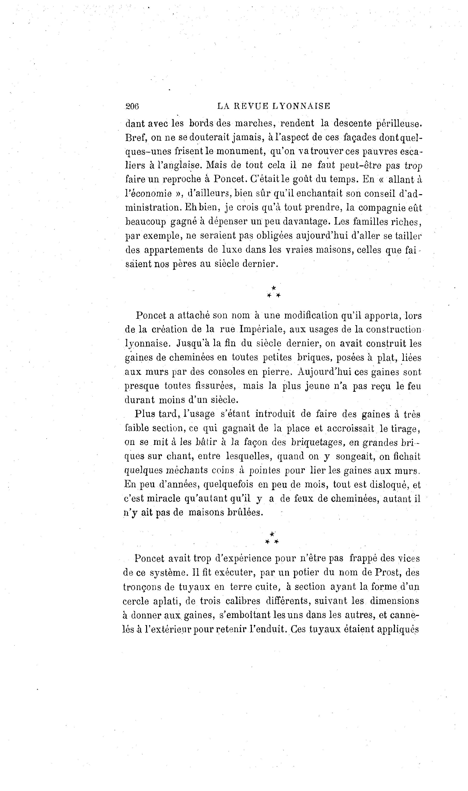 206 LA REVUE LYONNAISE dant avec les bords des marches, rendent la descente périlleuse. Bref, on ne se douterait jamais, à l'aspect de ces façades dont quel- ques-unes frisent le monument, qu'on va trouver ces pauvres esca- liers à l'anglaise. Mais de tout cela il ne faut peut-être pas trop faire un reproche à Poncet. C'était le goût du temps. En « allant à l'économie », d'ailleurs, bien sûr qu'il enchantait son conseil d'ad- ministration. Ehbien, je crois qu'à tout prendre, la compagnie eût beaucoup gagné à dépenser un peu davantage. Les familles riches, par exemple, ne seraient pas obligées aujourd'hui d'aller se tailler des appartements de luxe dans les vraies maisons, celles que fai • sà ient nos pères au siècle dernier. * Poncet a attaché son nom à une modification qu'il apporta, lors de la création de la rue Impériale, aux usages de la construction lyonnaise. Jusqu'à la fin du siècle dernier, on avait construit les gaines de cheminées en toutes petites briques, posées à plat, liées aux murs par des consoles en pierre. Aujourd'hui ces gaines sont presque toutes fissurées, mais la plus jeune n'a pas reçu le feu durant moins d'un siècle. Plus tard,, l'usage s'étant introduit de faire des gaines à très faible section, ce qui gagnait de la place et accroissait le tirage, on se mit à les bâtir à la façon des briquetages, en grandes bri- ques sur chant, entre lesquelles, quand on y songeait, on fichait quelques méchants coins à pointes pour lier les gaines aux murs. En peu d'années, quelquefois en peu de mois, tout est disloqué, et c'est miracle qu'autant qu'il y a de feux de cheminées, autant il n'y ait pas de maisons brûlées. ** Poncet avait trop d'expérience pour n'être pas frappé des vices de ce système. Il fit exécuter, par un potier du nom de Prost, des tronçons de tuyaux en terre cuite, à section ayant la forme d'un cercle aplati, de trois calibres différents, suivant les dimensions à donner aux. gaines, s'emboîtant les uns dans les autres, et canne- lés à l'extérieur pour retenir l'enduit. Ces tuyaux étaient appliqués