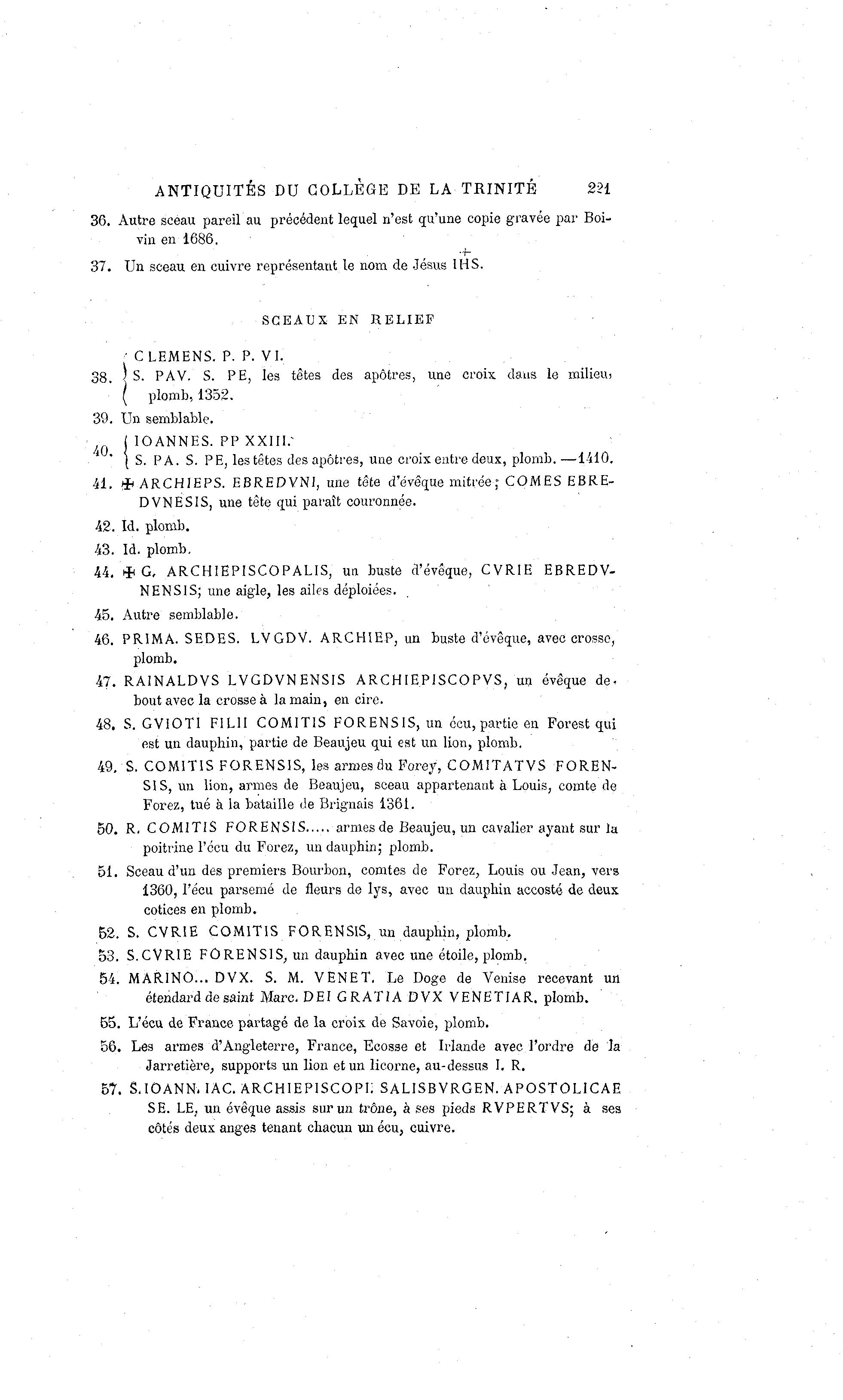 ANTIQUITÉS DU COLLEGE DE LA T R I N I T É 221