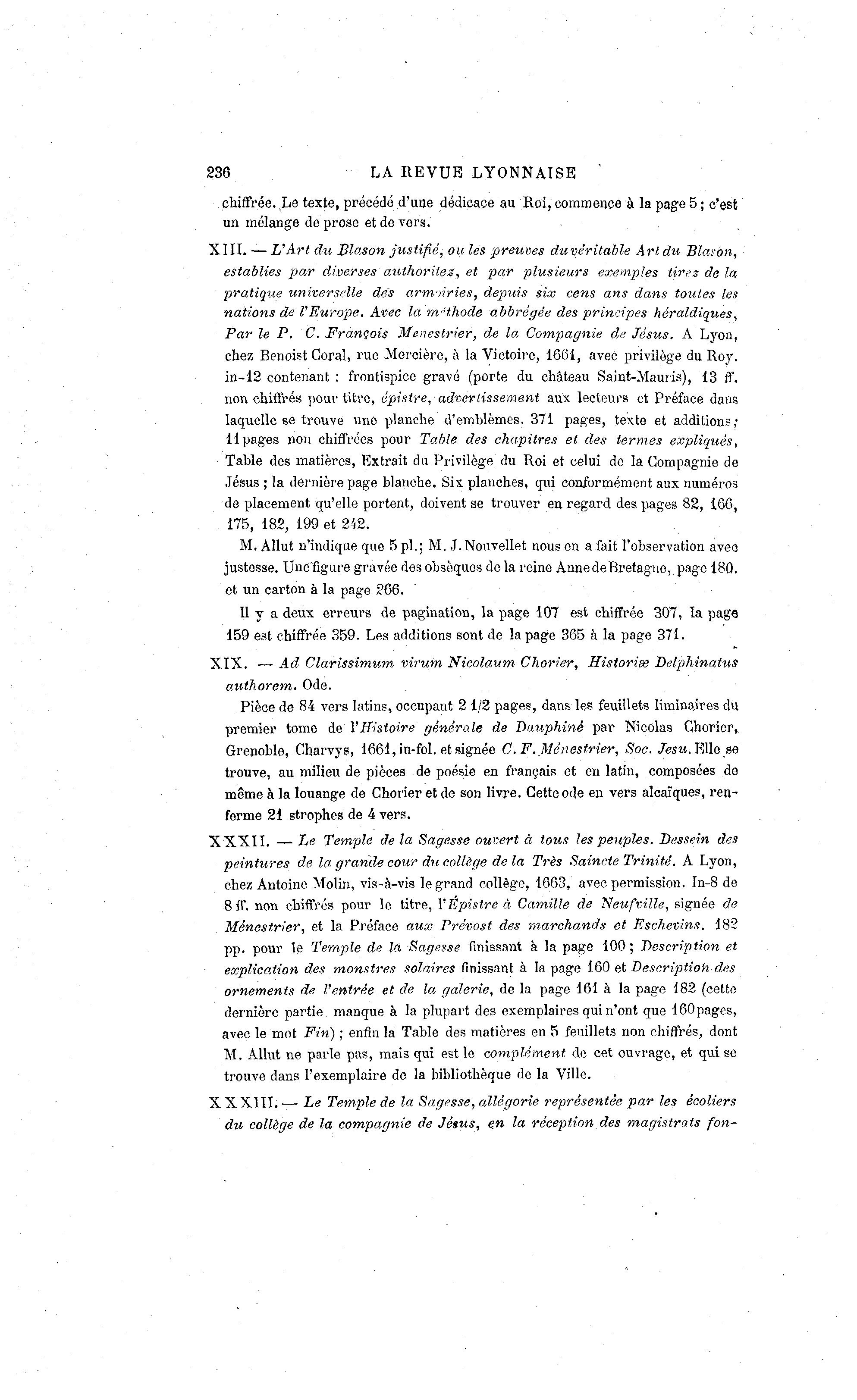 Grenoble, Cbarvys, 1661, in-fol. et signée C. F. Menestrier, Soc. Jesu. Elle se
