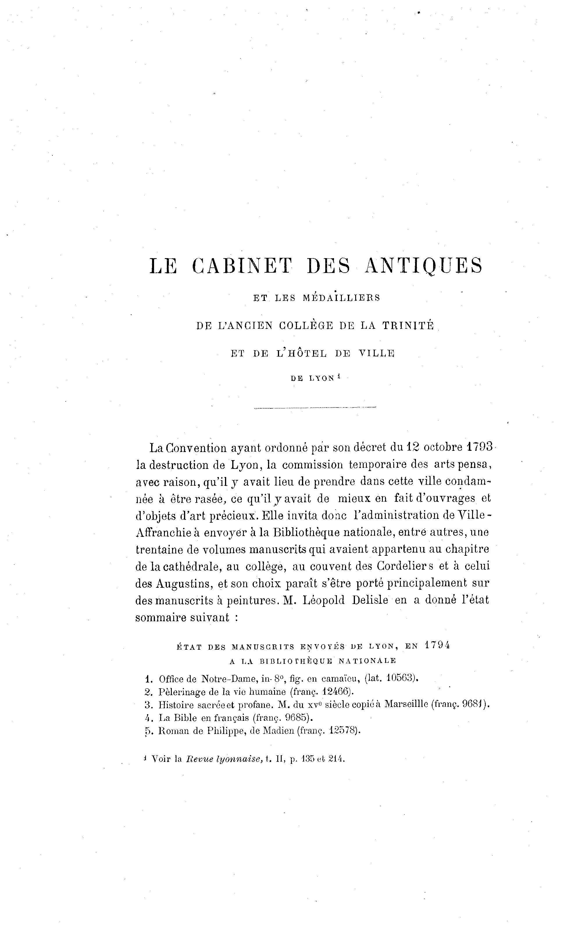 ÉTAT DES MANUSCRITS ENVOYÉS DE LYON, EN 1794