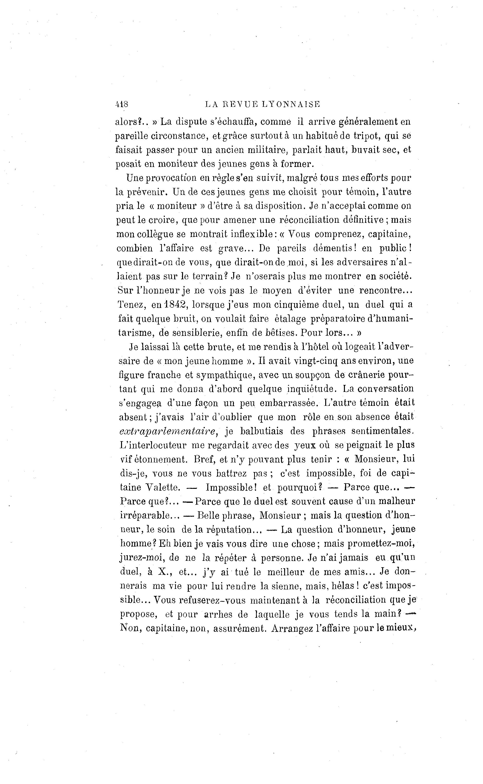 Tenez, en 1842, lorsque j'eus mon cinquième duel, un duel qui a