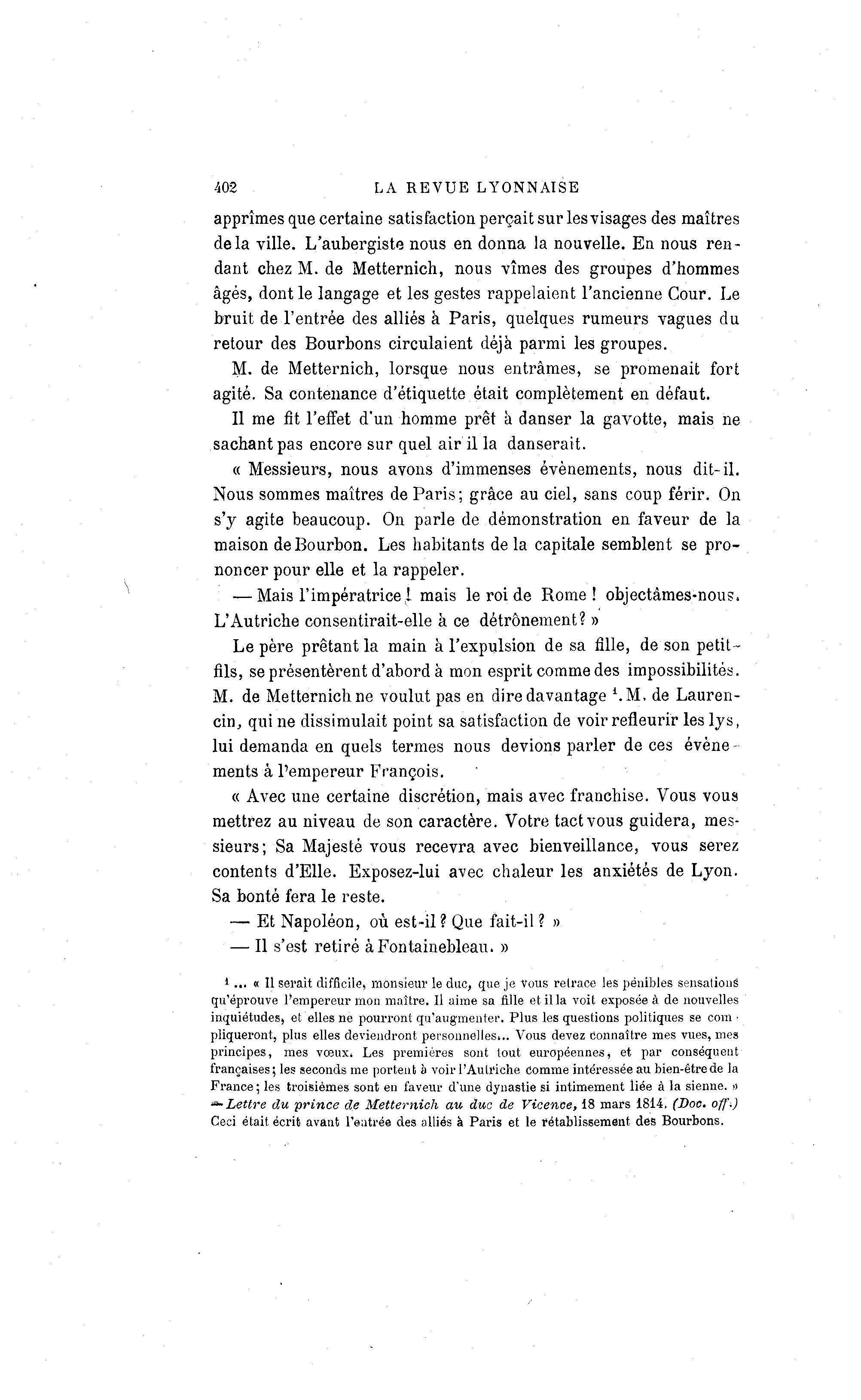 *-Lettre du prince de Metternich au duc de Vicence, 18 mars 1814, (Doc. off.)