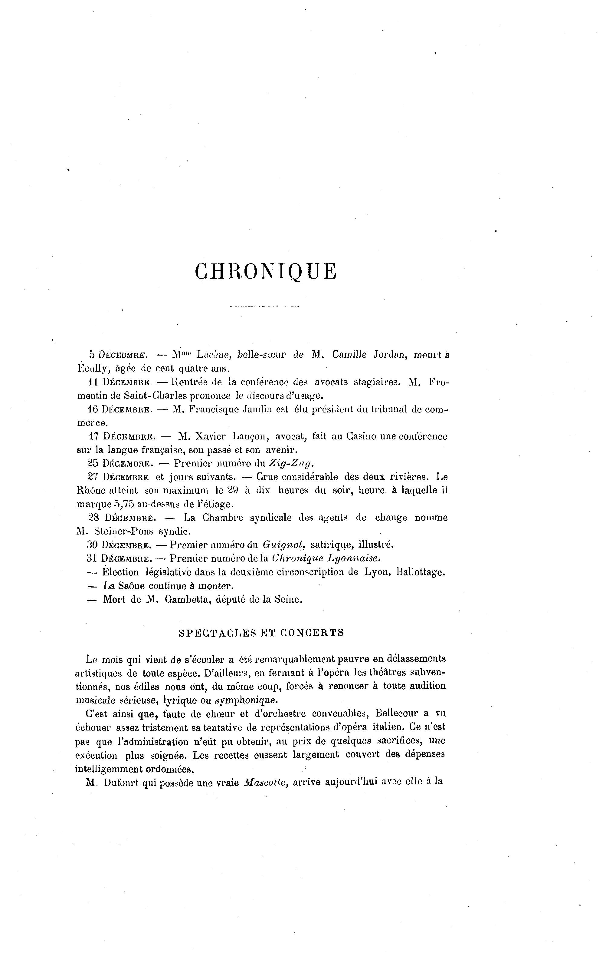 31 DÉCEMBRE. — Premier numéro de la Chronique Lyonnaise.