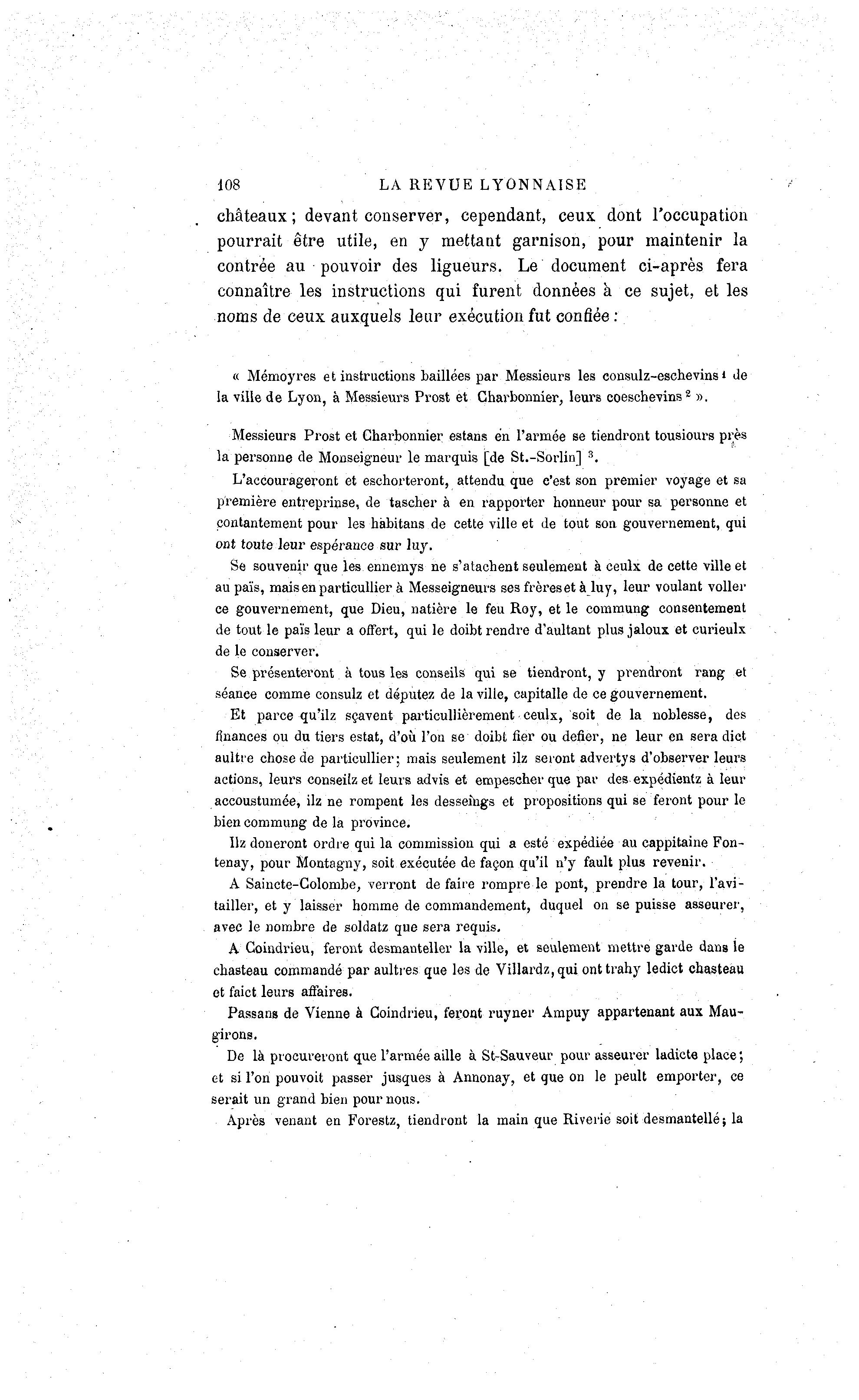 la ville de Lyon, à Messieurs Prost et Charbonnier, leurs coeschevins2 ».