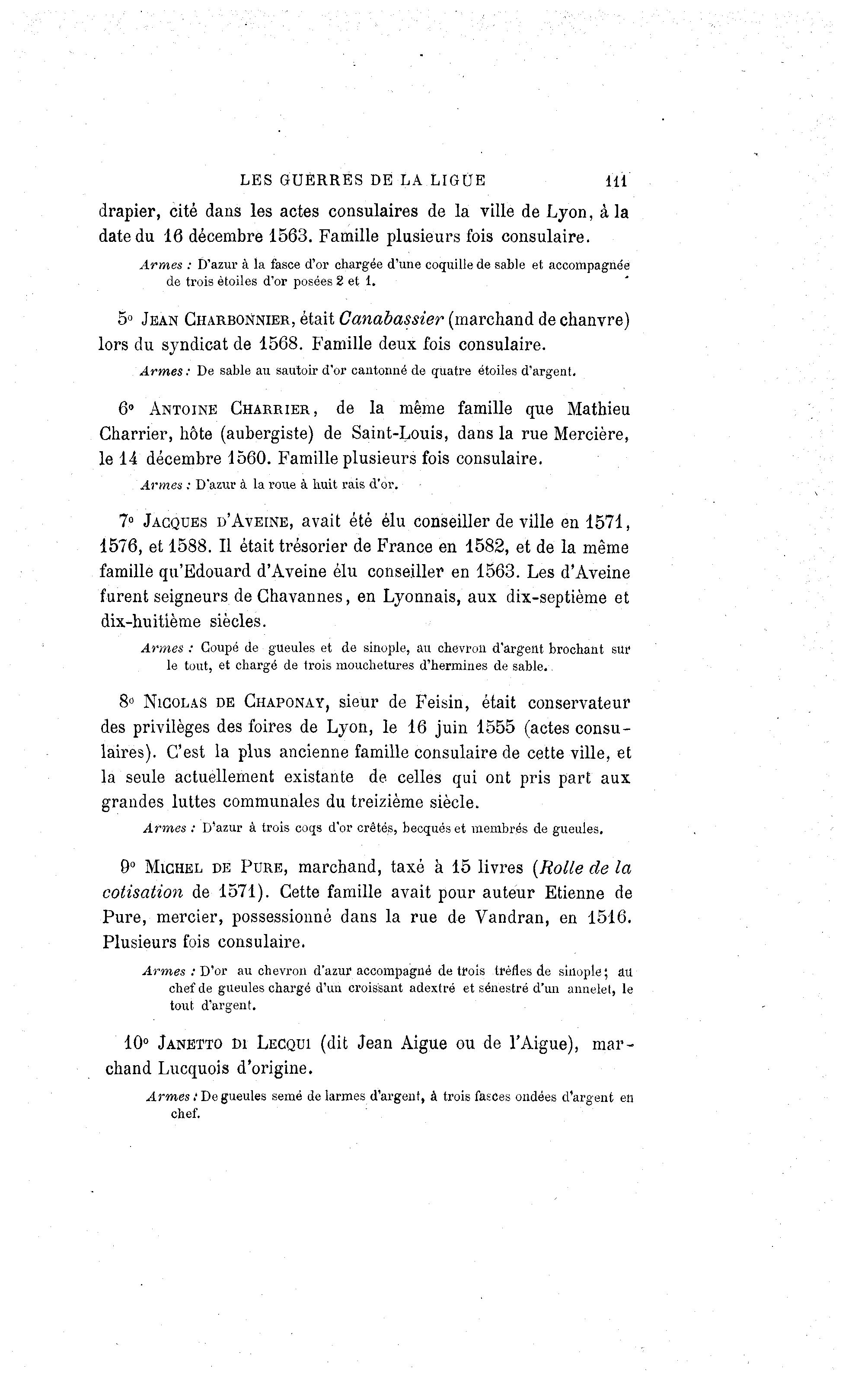 7° JACQUES D'AVEINE, avait été élu conseiller de ville en 1571,