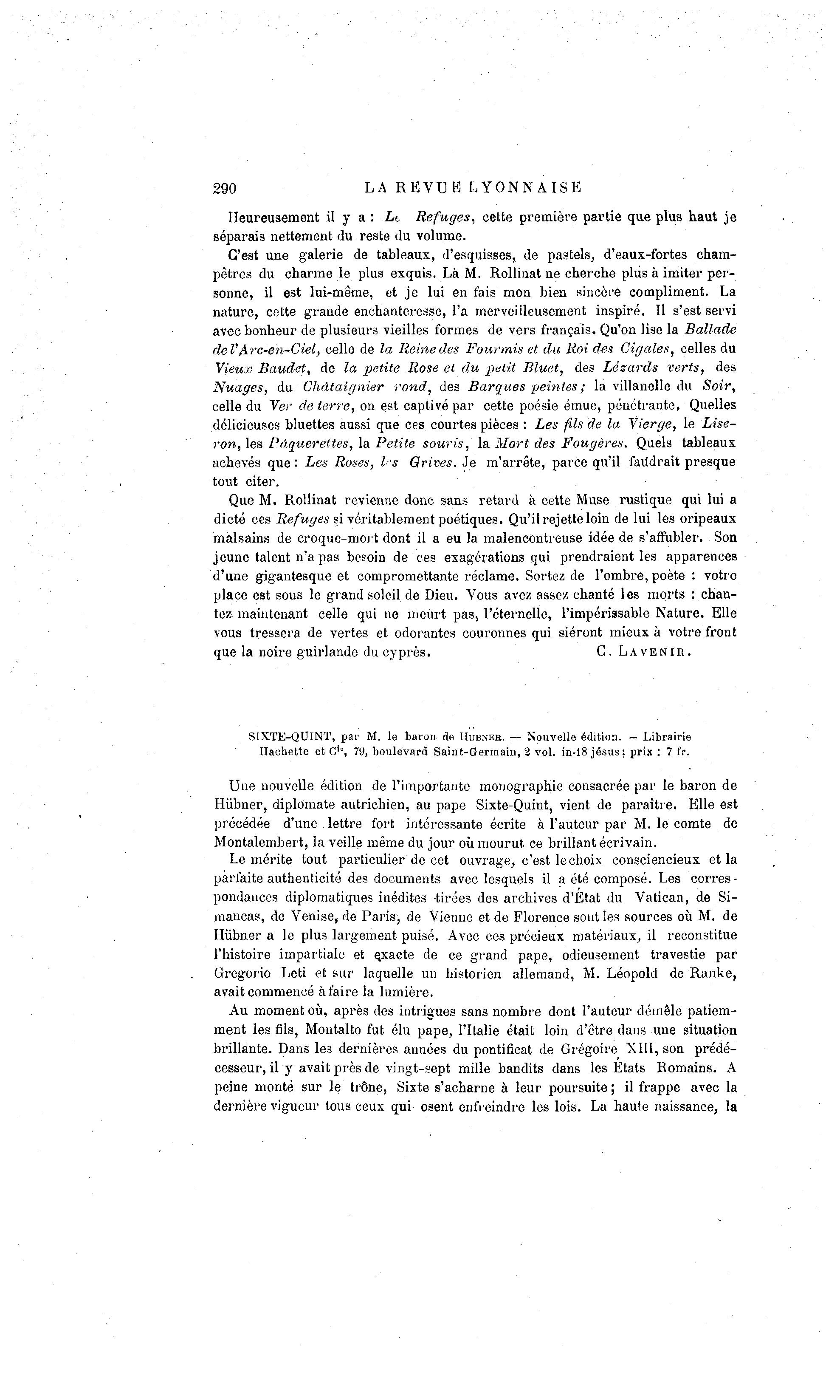 Hiïbner, diplomate autrichien, au pape Sixte-Quint, vient de paraître. Elle est