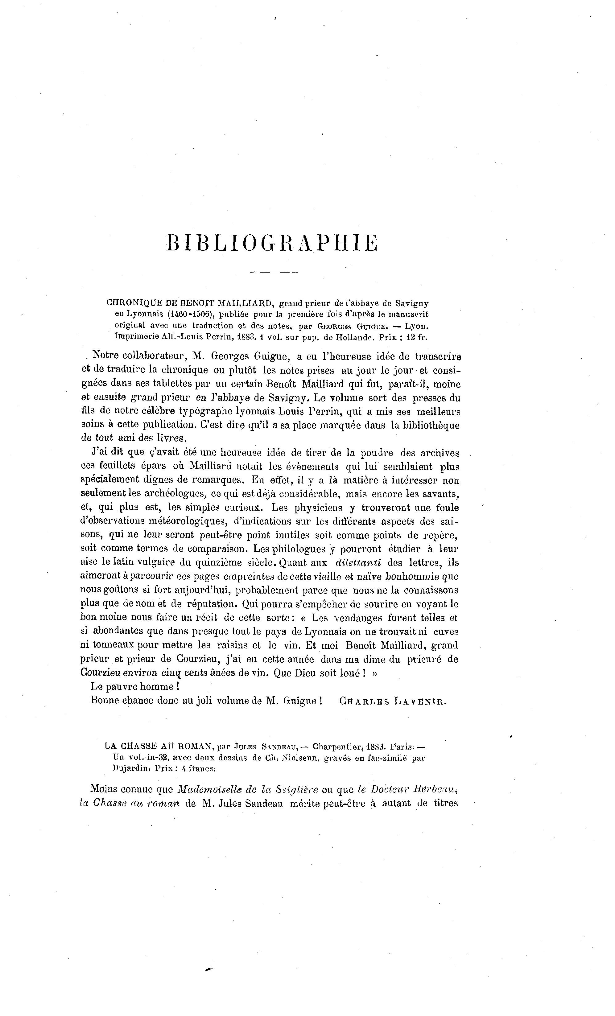 Notre collaborateur, M. Georges Guigue, a eu l'heureuse idée de transcrire