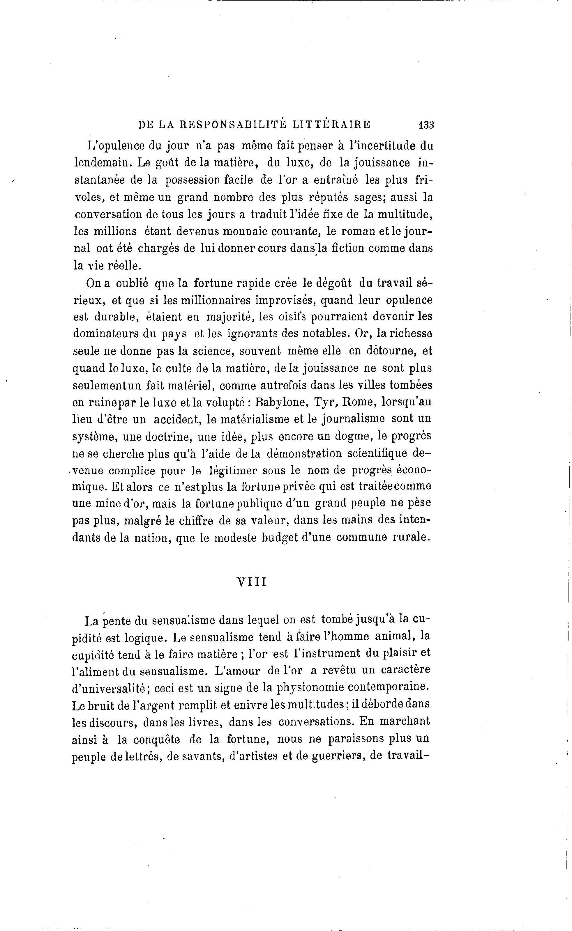 DE LA RESPONSABILITE LITTERAIRE 133