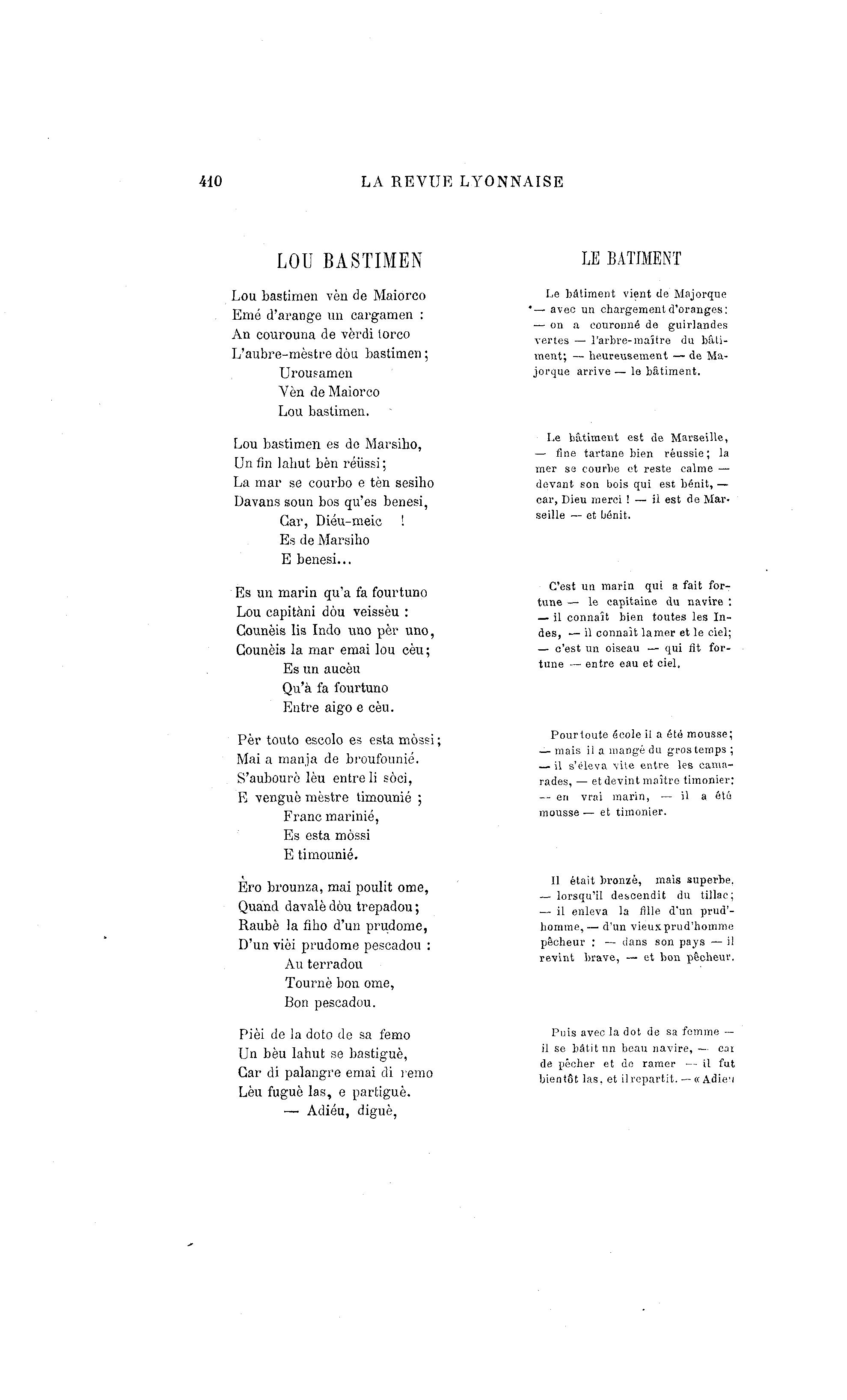 Ero brounza, mai poulit ome, ~ lorsqu'il descendit du tillac;