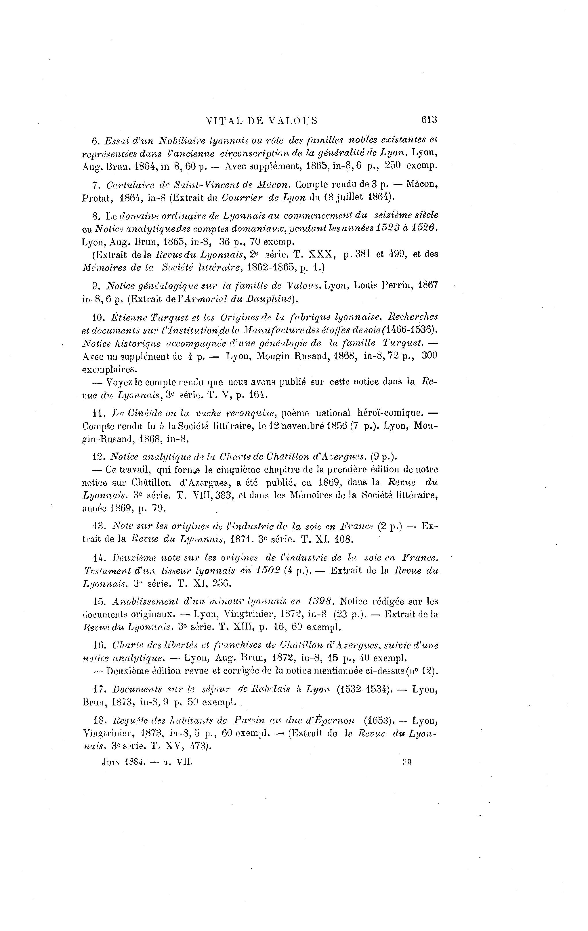 Lyonnais. 3° série. T. VIII, 383, et dans les Mémoires de la Société littéraire,