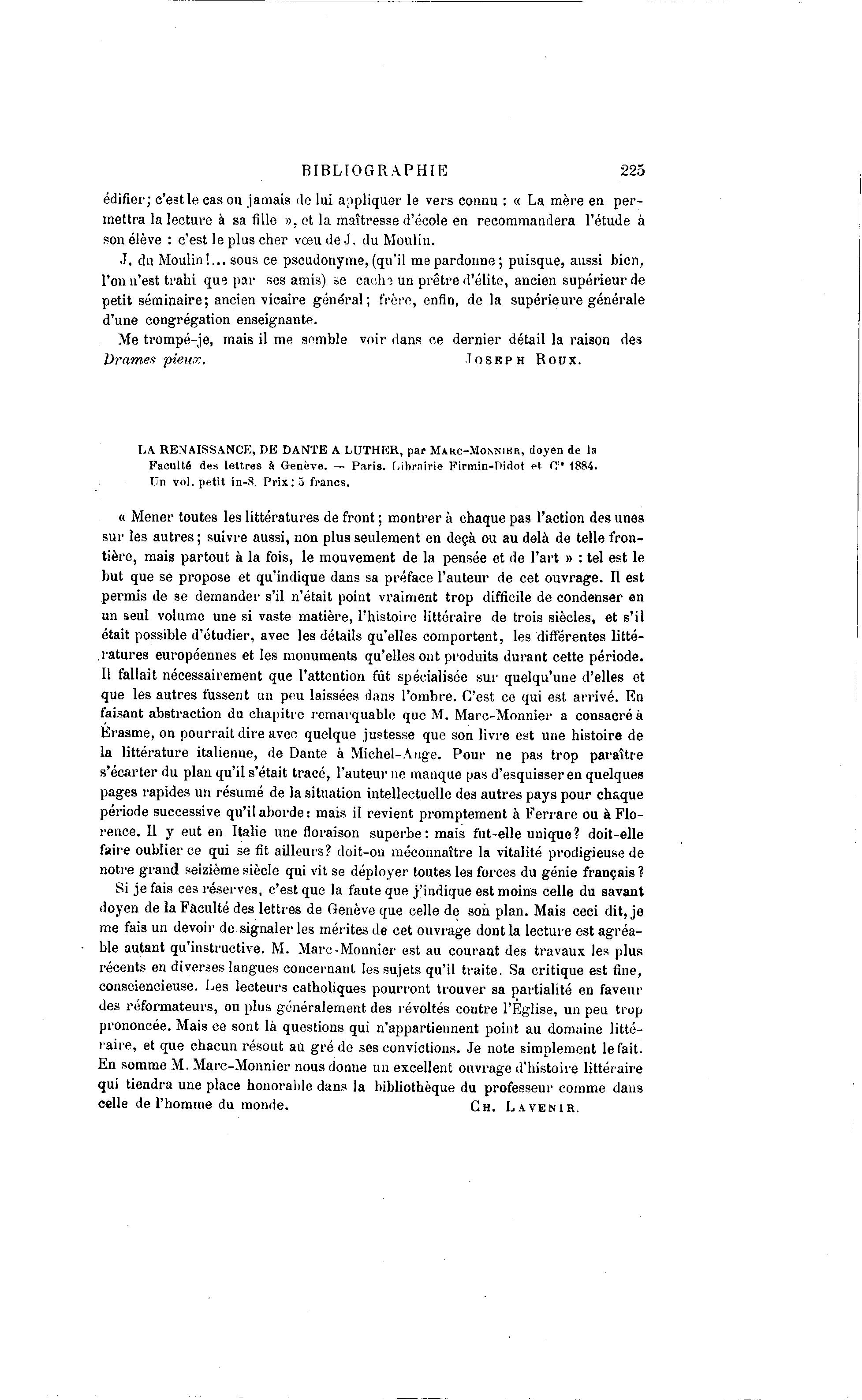 faisant abstraction du chapitre remarquable que M. Marc-Monnier a consacré Ã