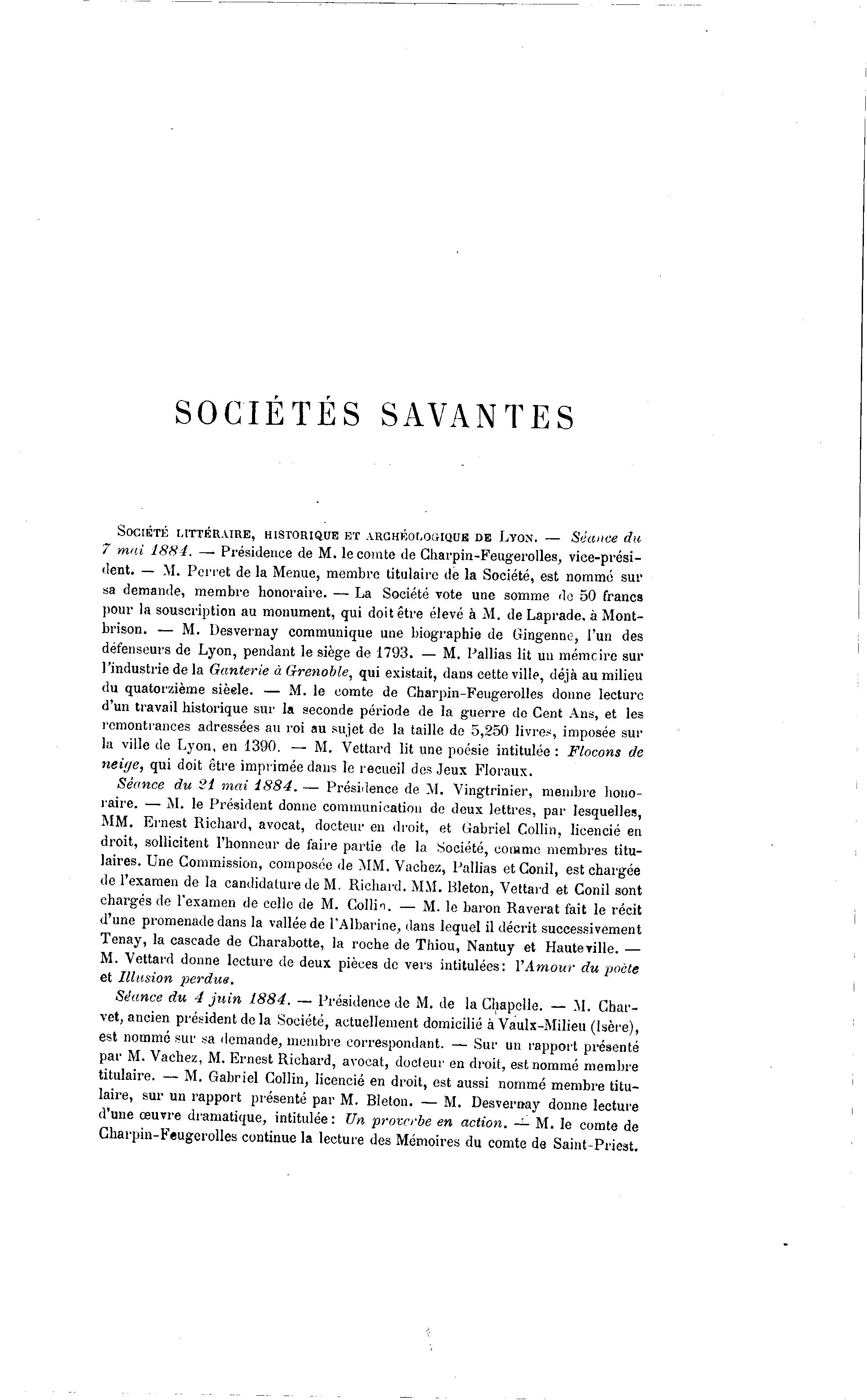 Séance du 21 mai 1884. — Présidence de M. Vingtrinier, membre hono-